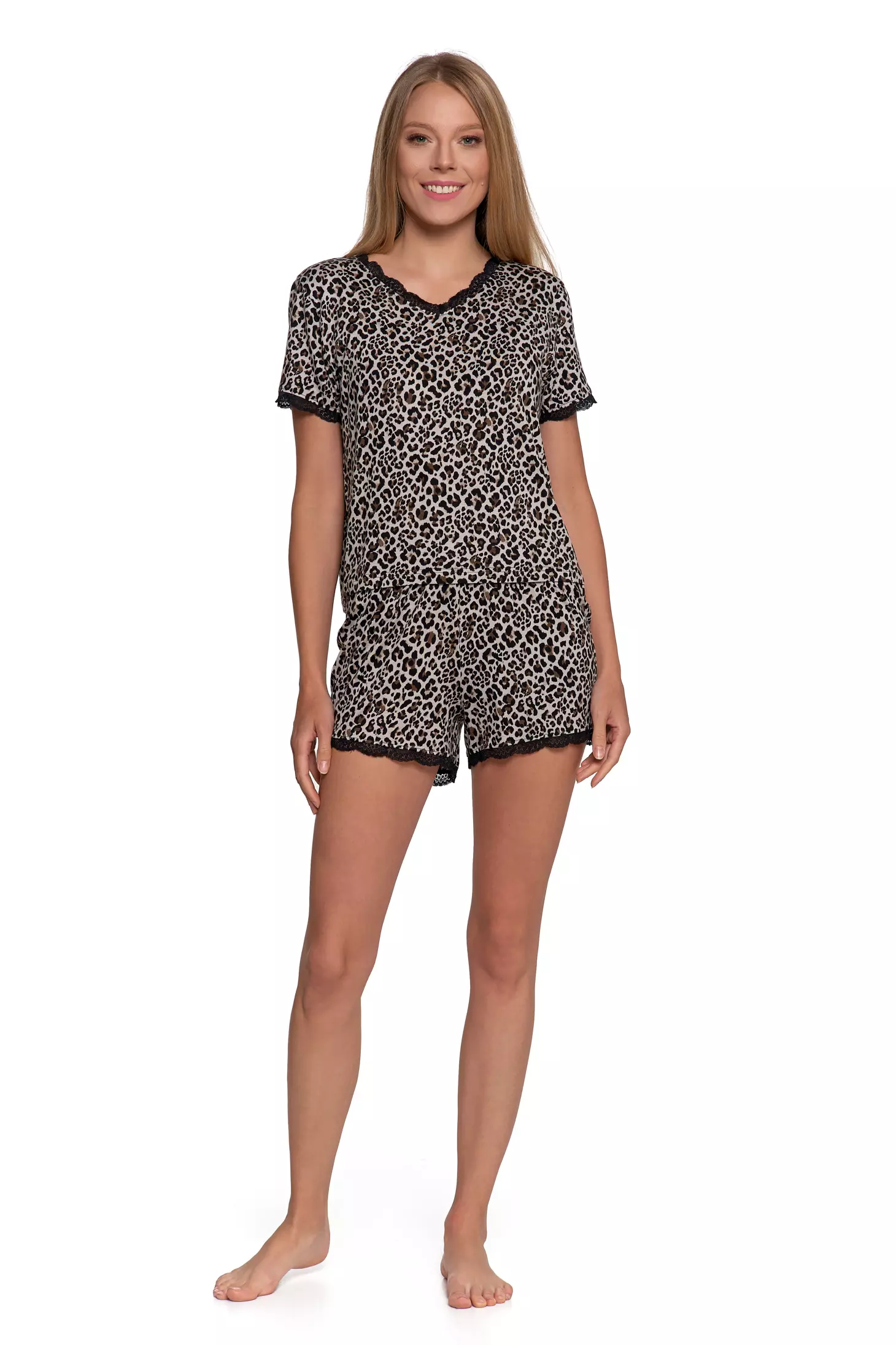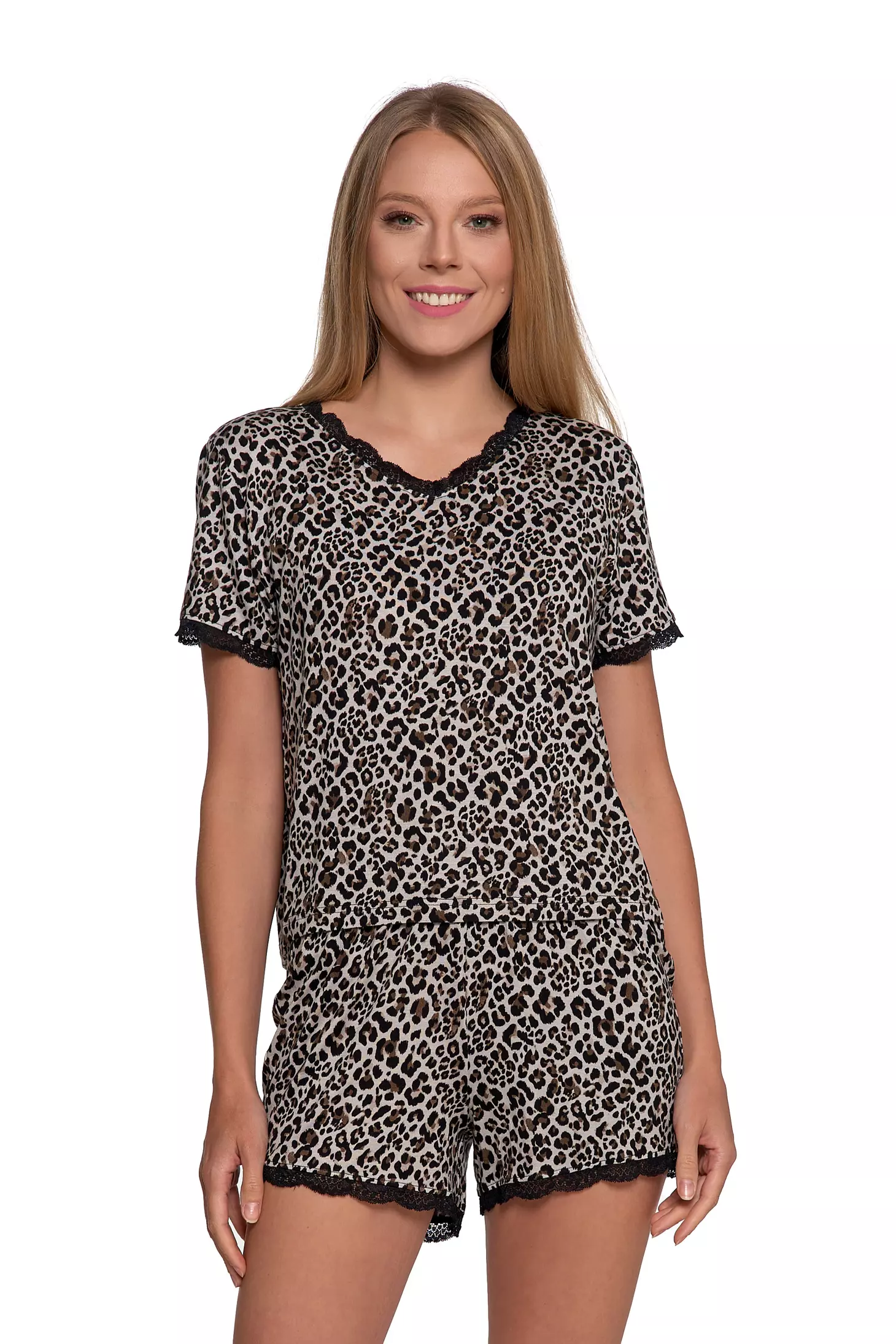 PIŻAMA DAMSKA W PANTERKĘ MORAJ T-SHIRT Z KRÓTKIM RĘKAWEM SZORTY
