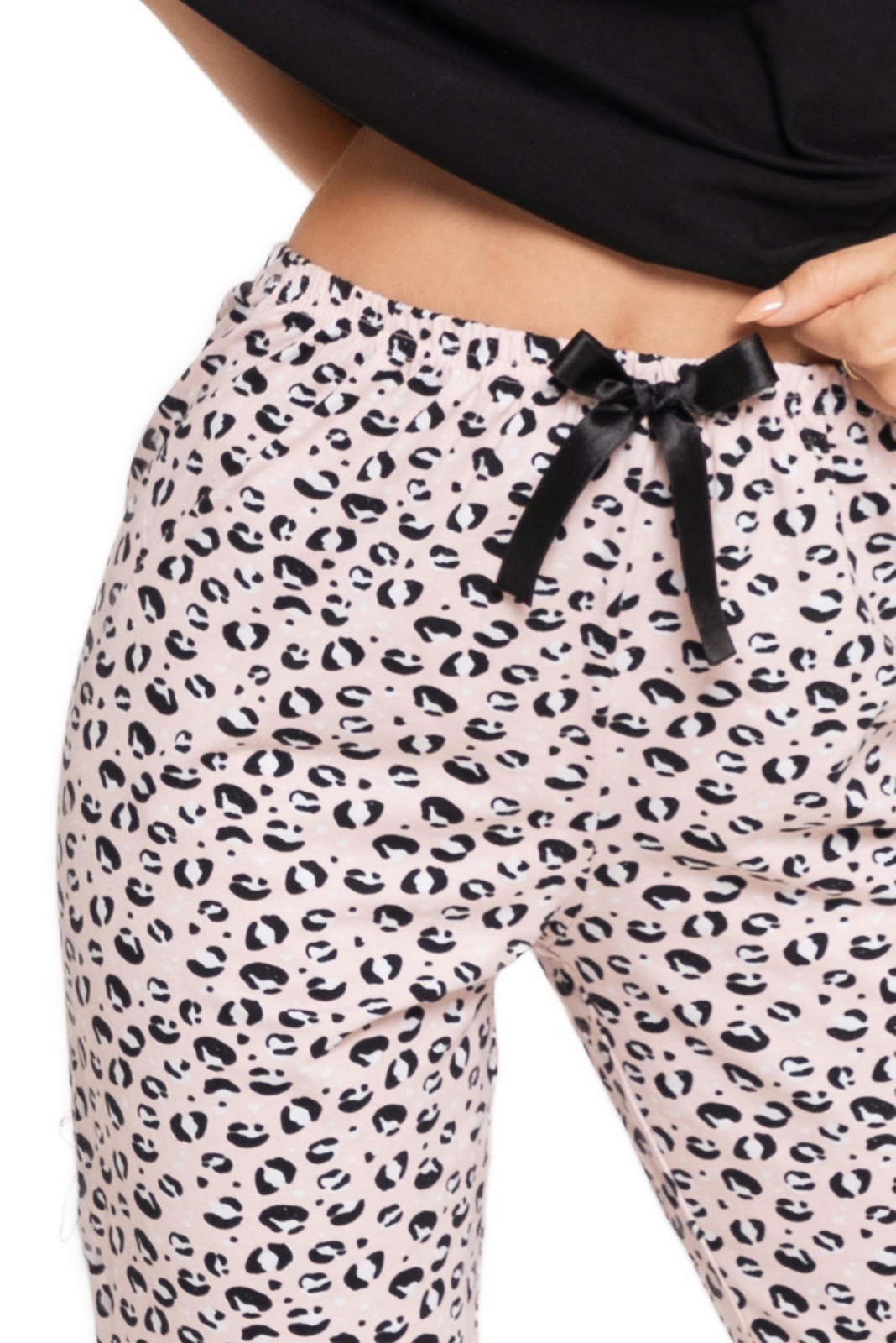 ❤️ Spodnie w długości 3/4 zdobią oryginalny wzór panterki, nadając całości lekko dzikiego charakteru. Wykonane z bawełny z domieszką, spodnie te łączą wygodę z elastycznością, umożliwiając swobodę ruchów podczas nocnego wypoczynku.