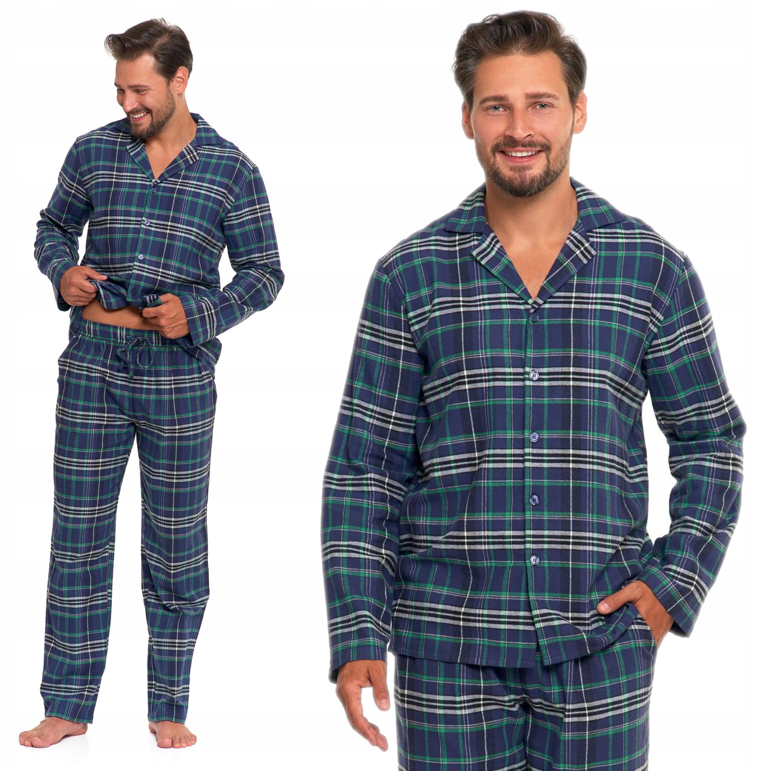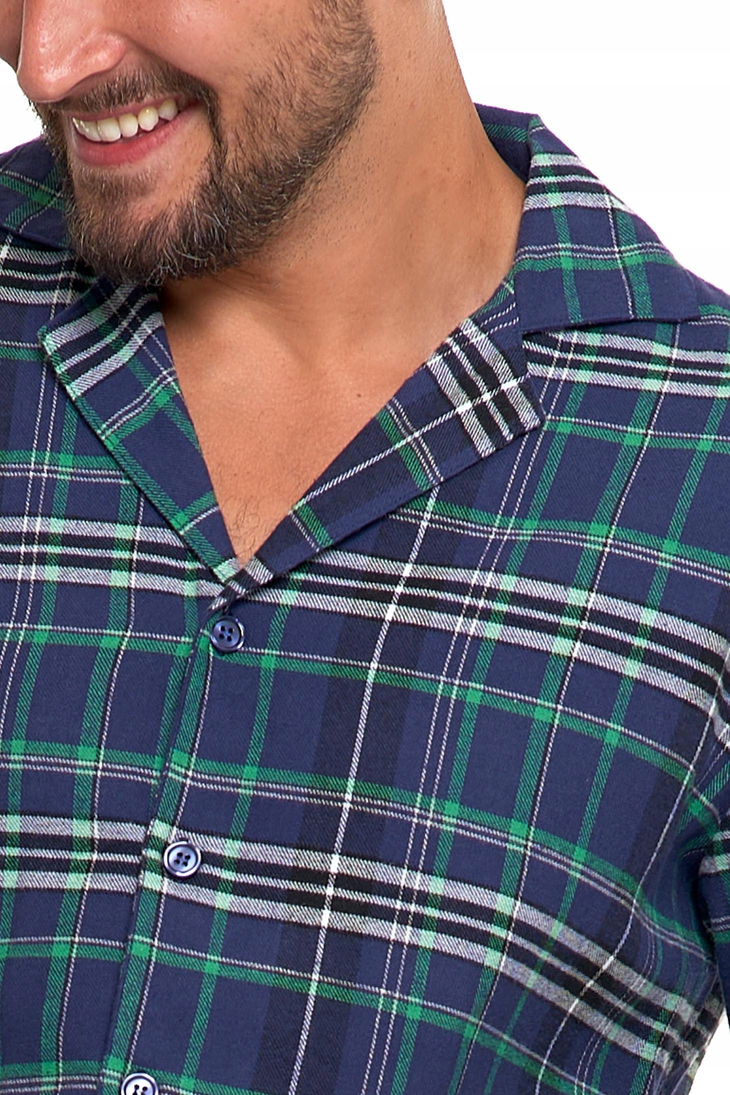 Elegancka piżama męska w klasyczny wzór w kratę, wykonana z wysokiej jakości miękkiej tkaniny flanelowej.