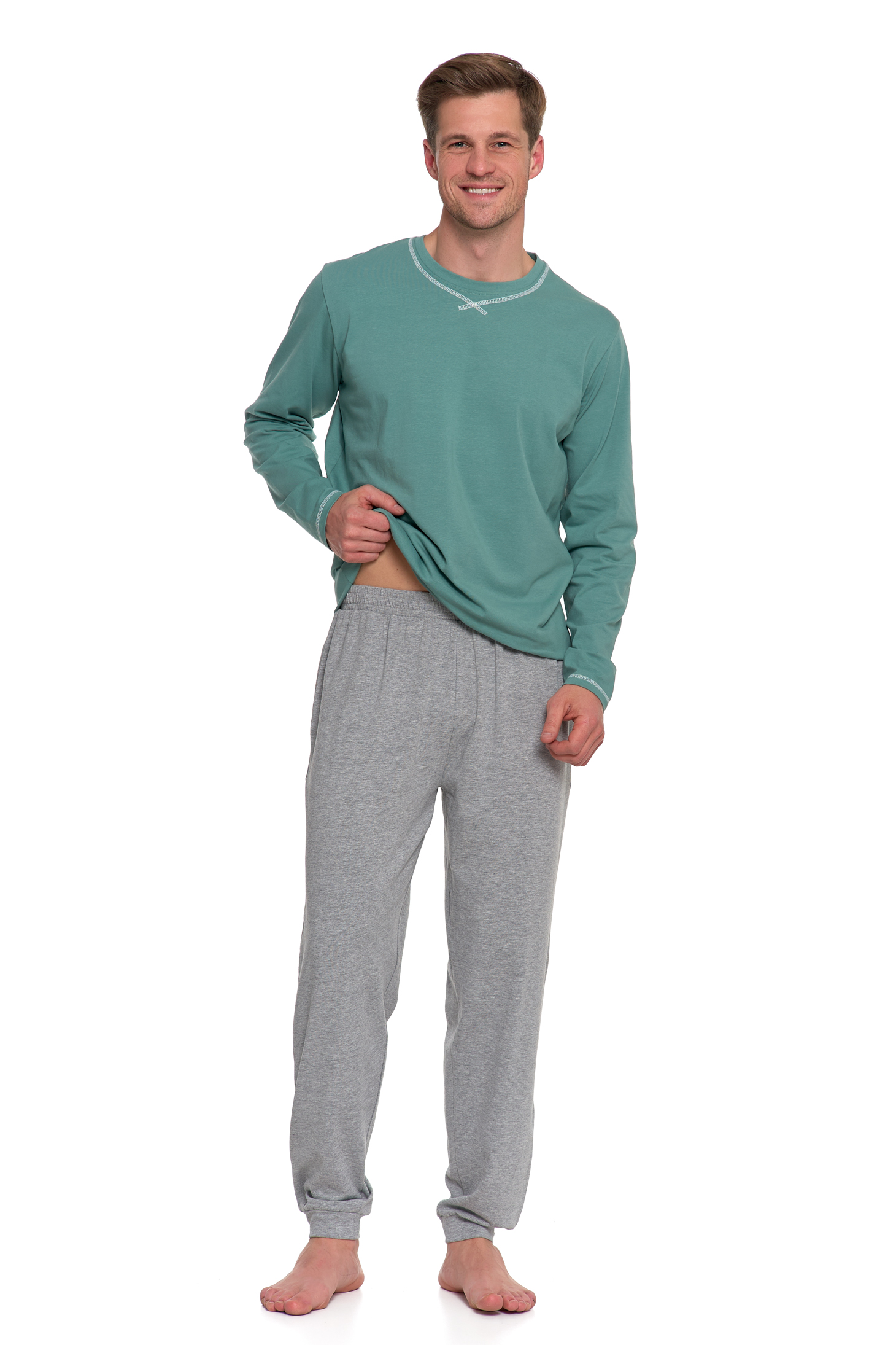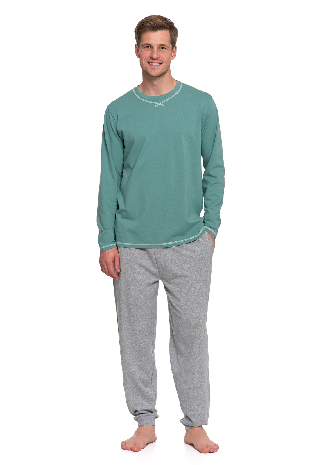 PIŻAMA MĘSKA DWUCZĘŚCIOWA DŁUGI RĘKAW I SPODNIE WYGODNA GŁADKA MORAJ