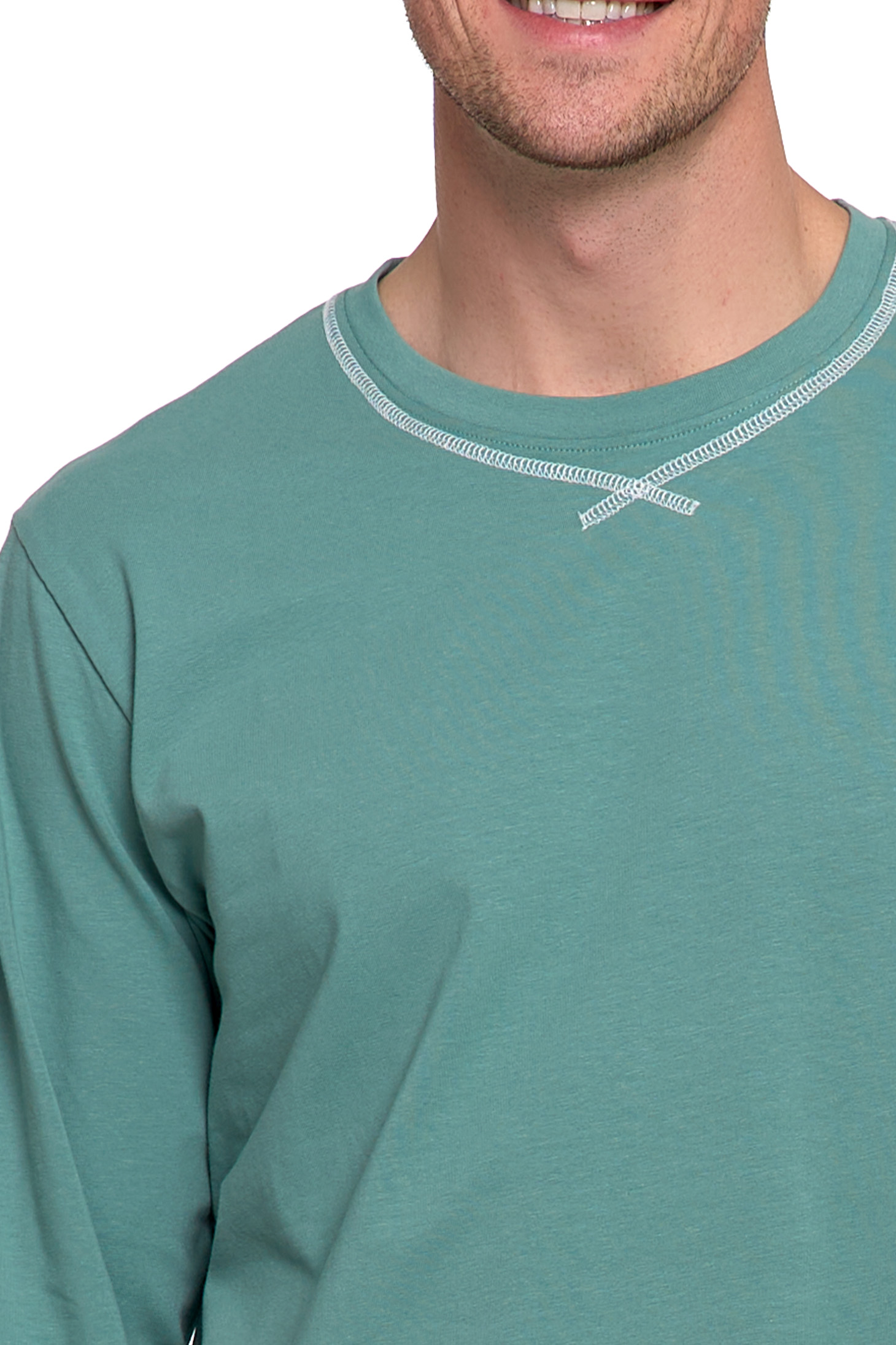 Góra (Koszulka): Długi rękaw z subtelnymi przeszyciami przy dekolcie, które nadają koszulce sportowego charakteru.