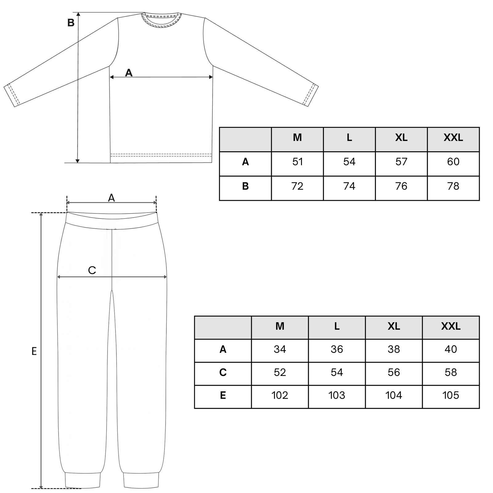 Ta męska piżama to idealne połączenie klasycznej wygody i funkcjonalności, idealne na chłodniejsze noce i spokojne wieczory. Wykonana z miękkiej, przyjemnej w dotyku bawełny, zapewnia naturalny komfort noszenia.