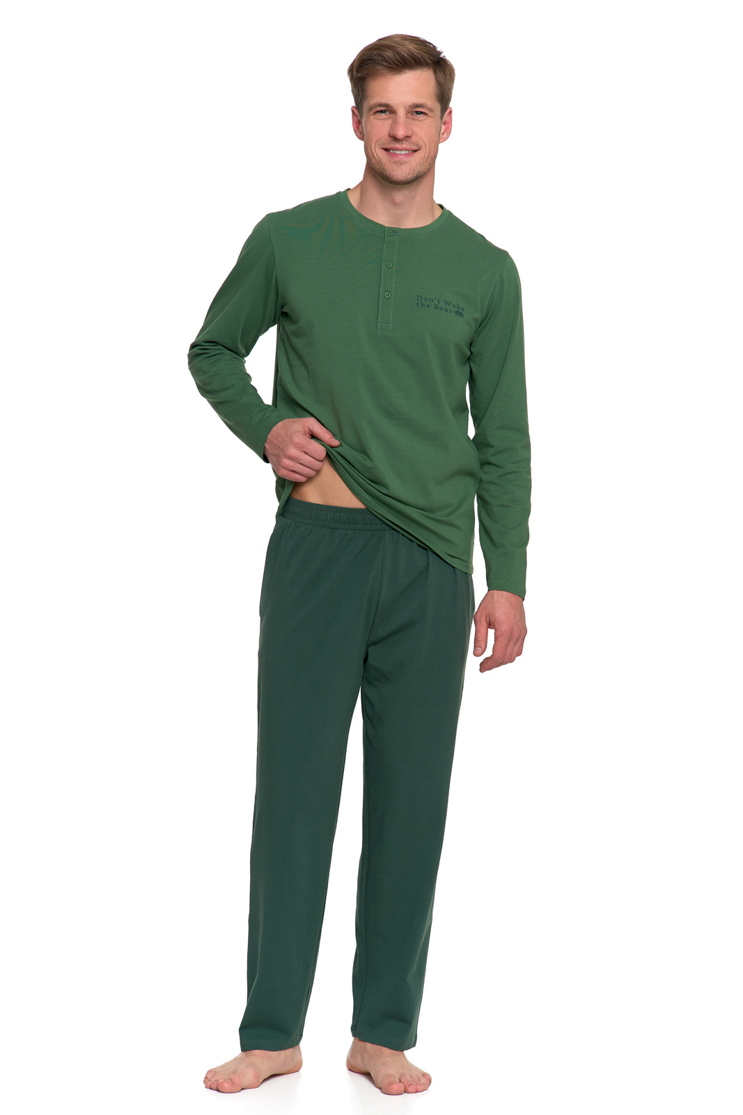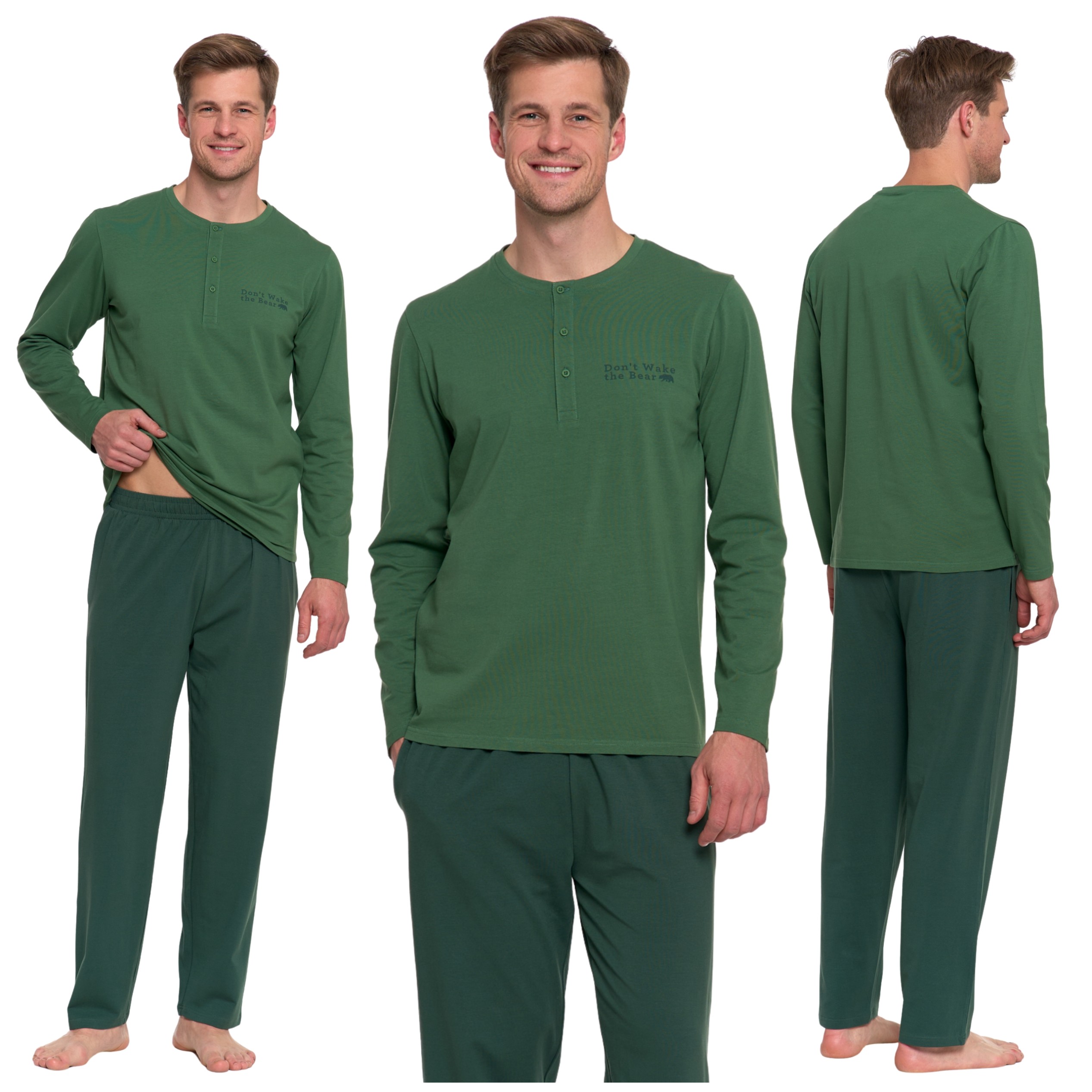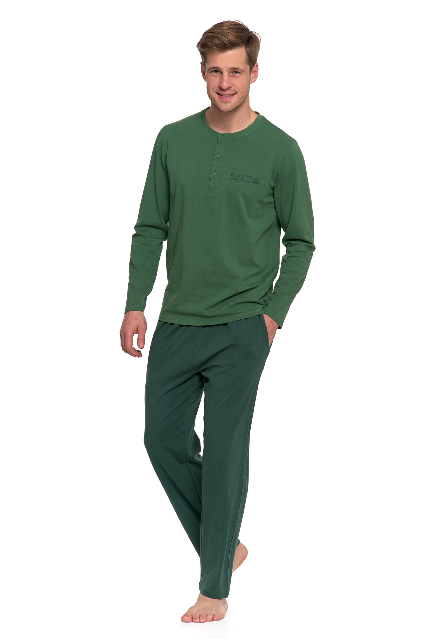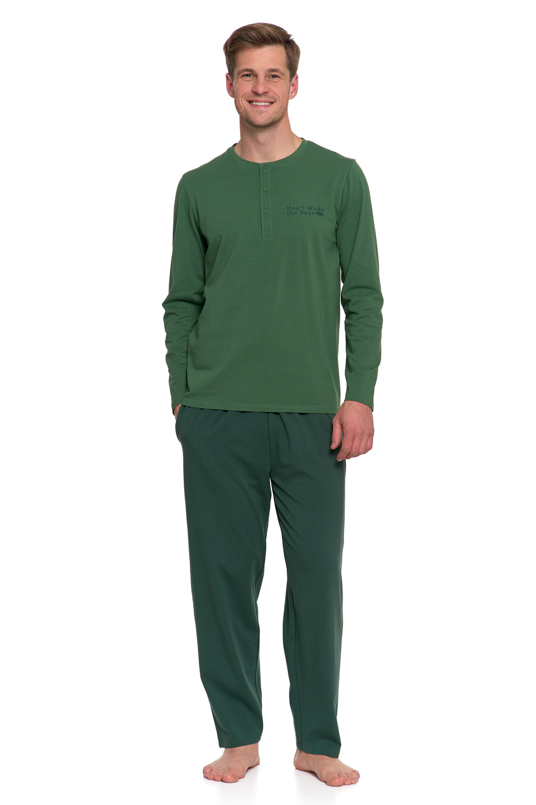 Komfort i Leśny Akcent: Męska Piżama Bawełniana z Długim Rękawem