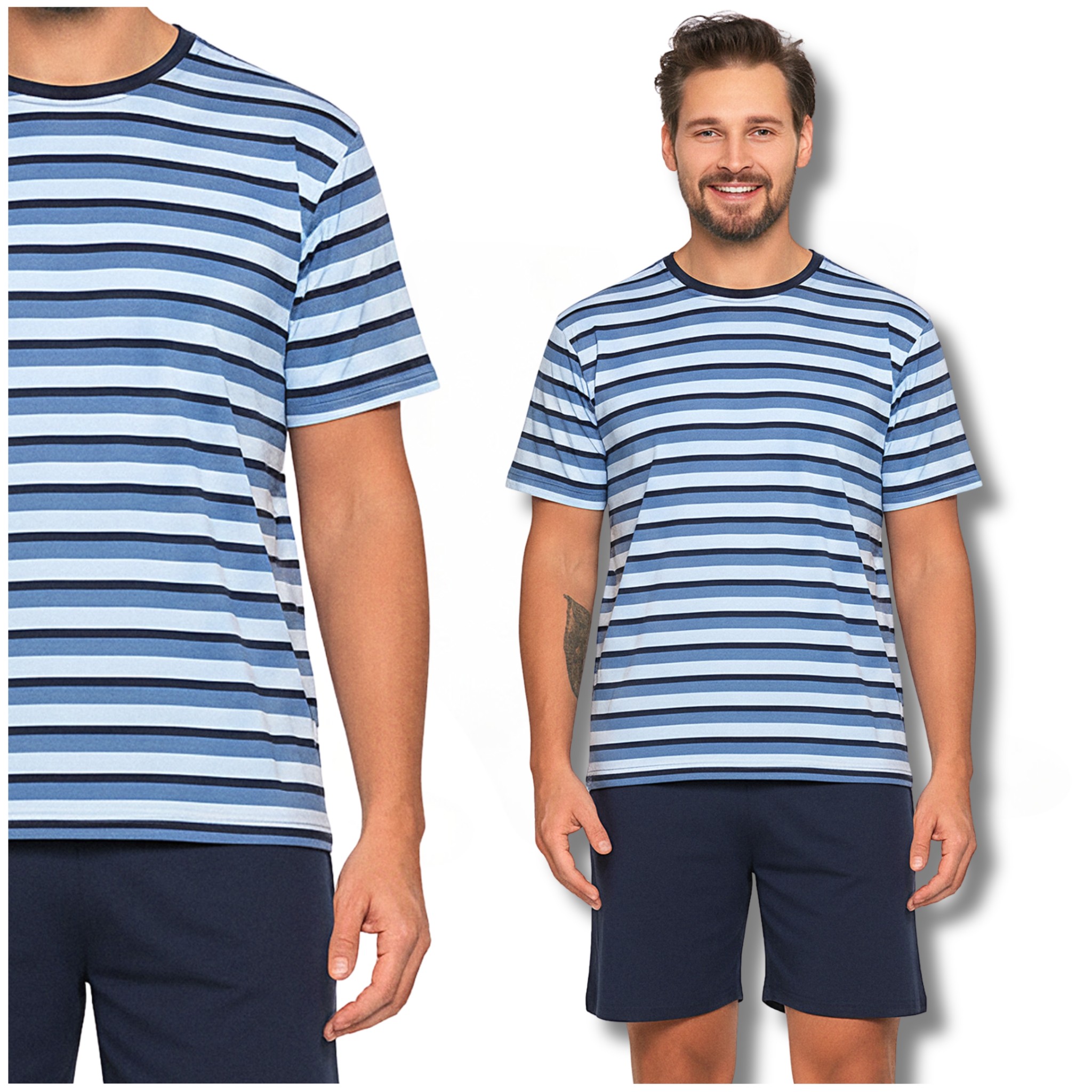 PIŻAMA MĘSKA DWUCZĘŚCIOWA KRÓTKI RĘKAW I SPODNIE SZORTY WYGODNA MORAJ