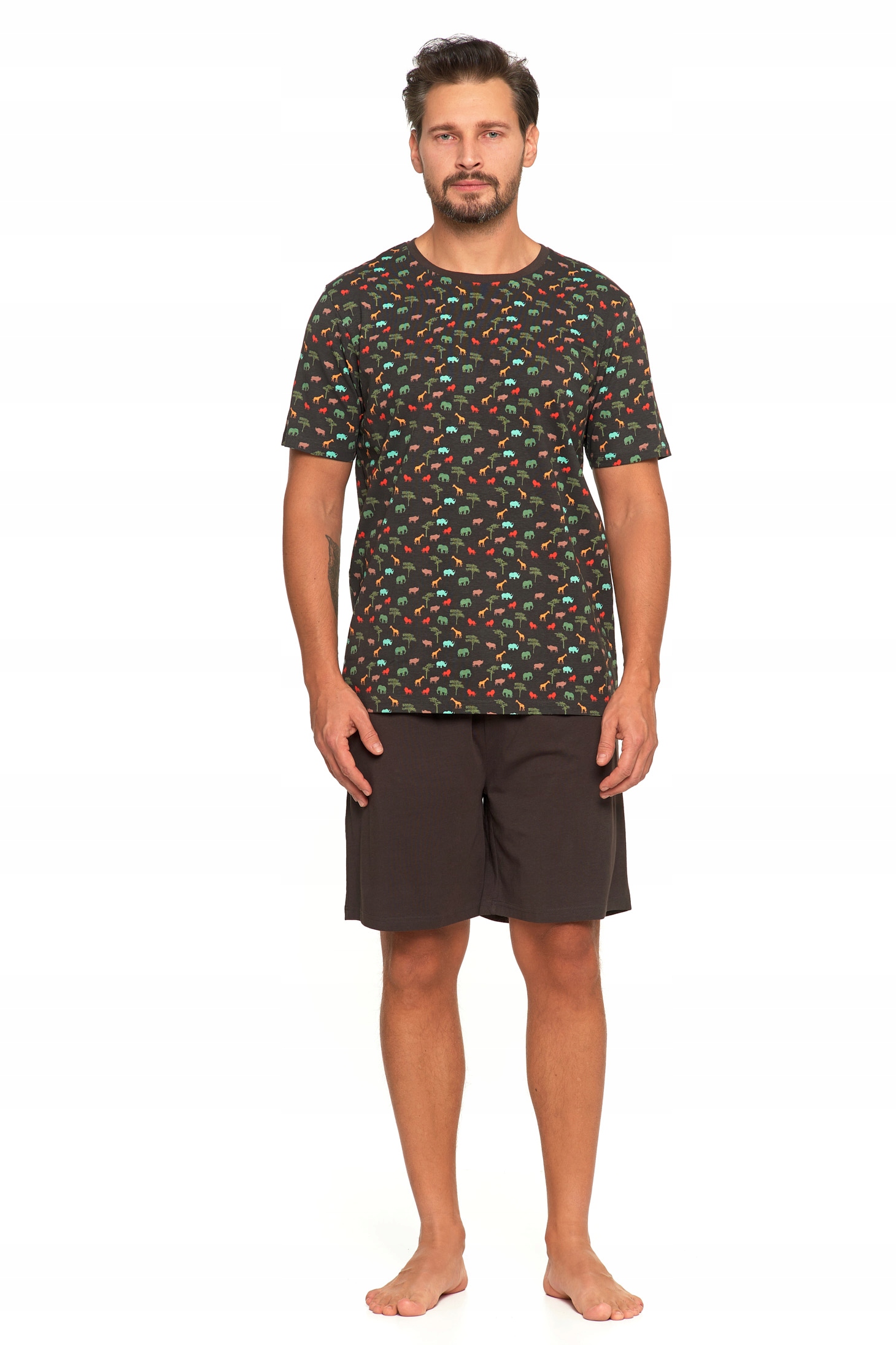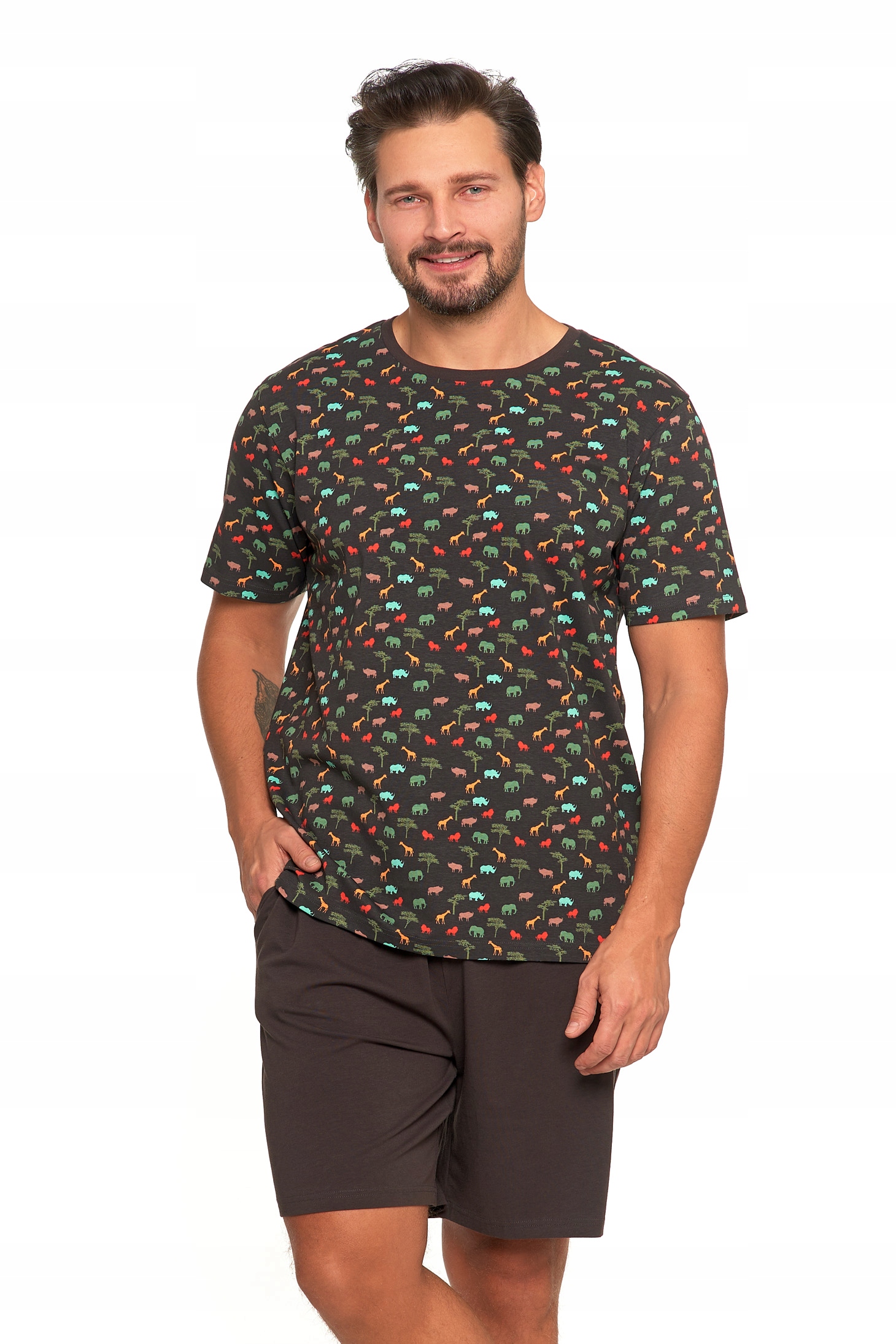 PIŻAMA MĘSKA T-Shirt z Krótkim Rękawem Safari Gładkie Spodenki MORAJ