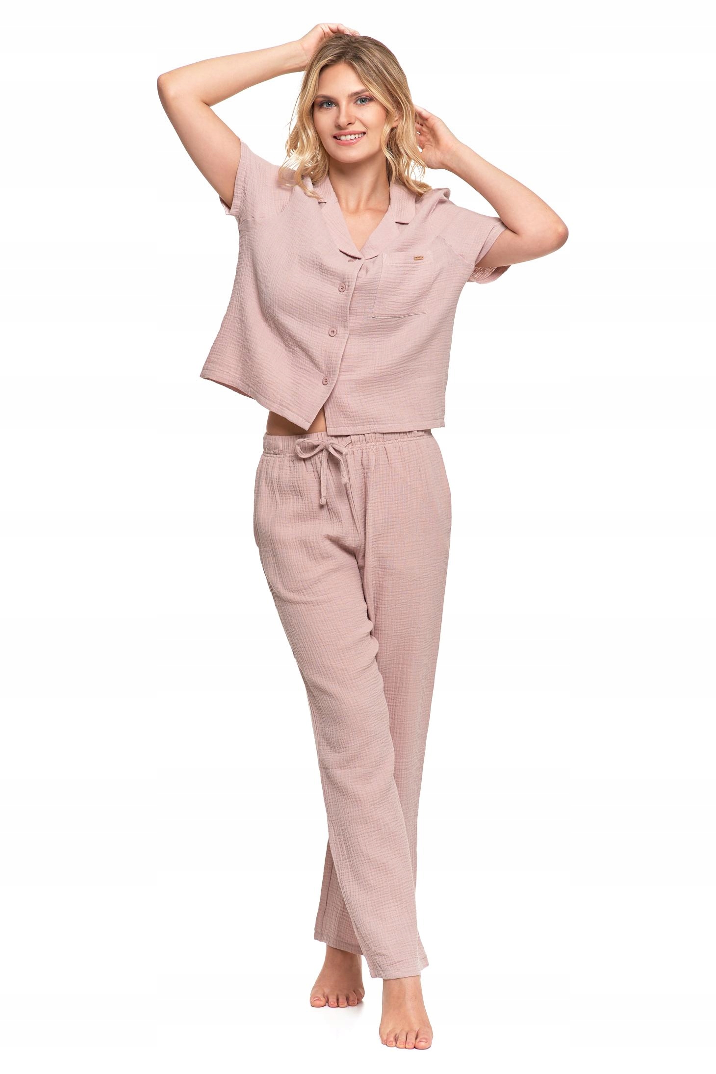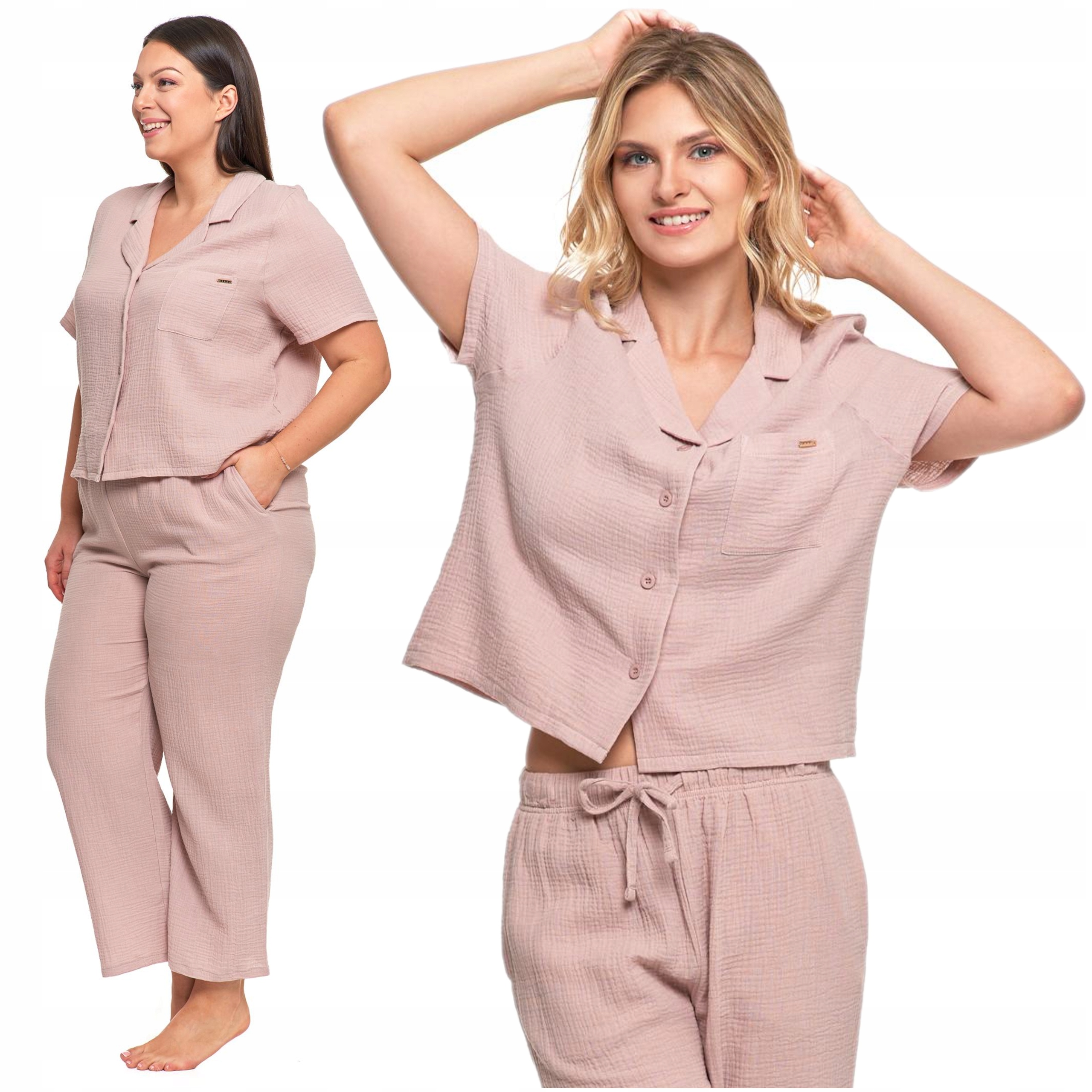 PIŻAMA Muślinowa Damska Bawełniana Krótka Koszula Długie Spodnie MORAJ