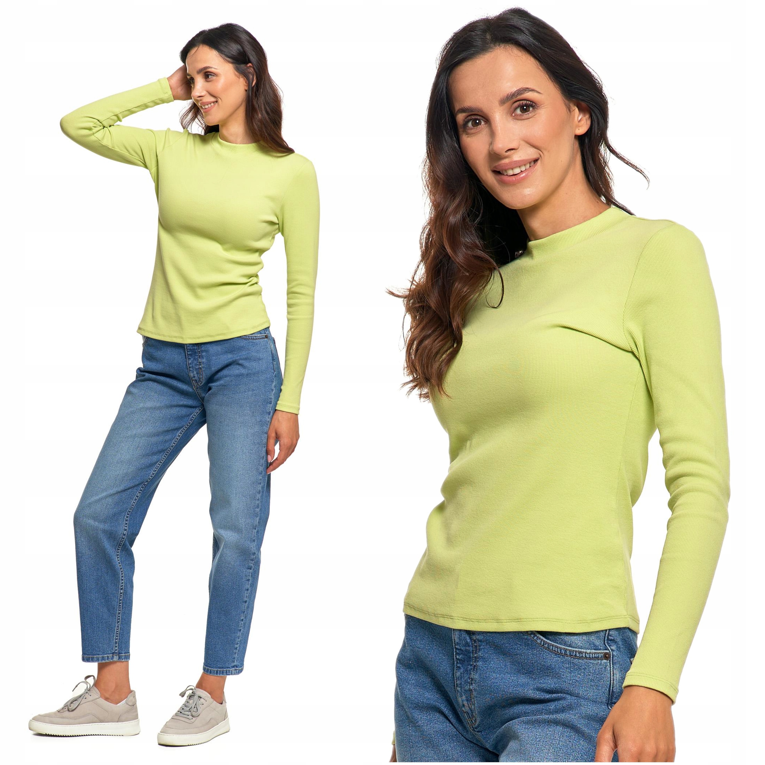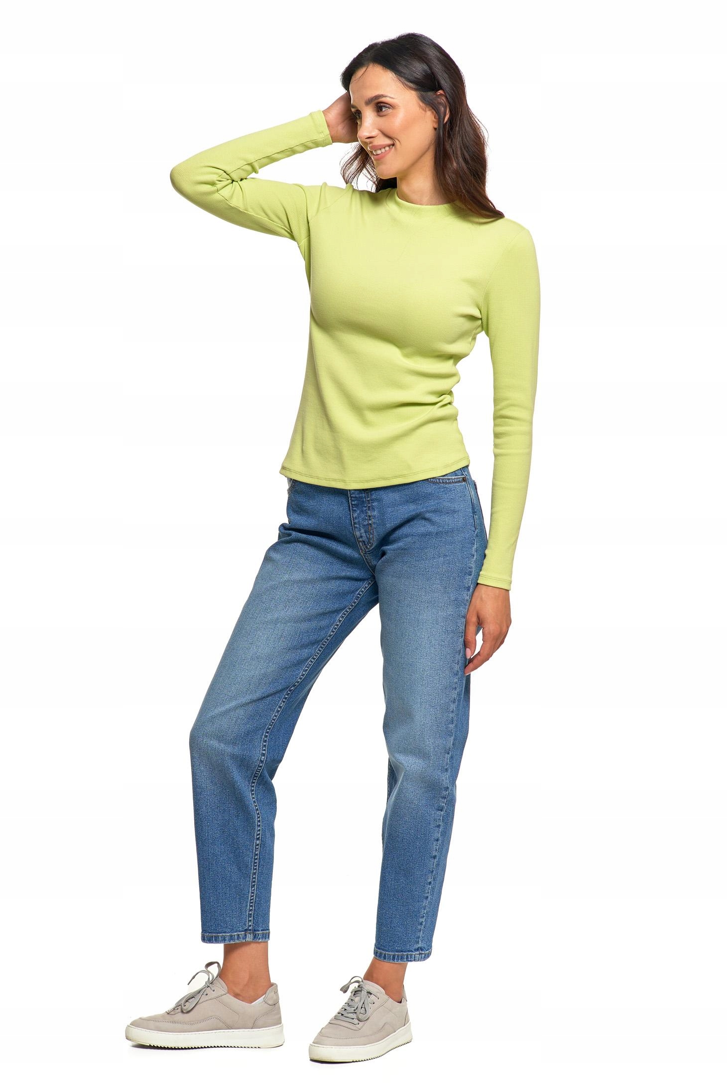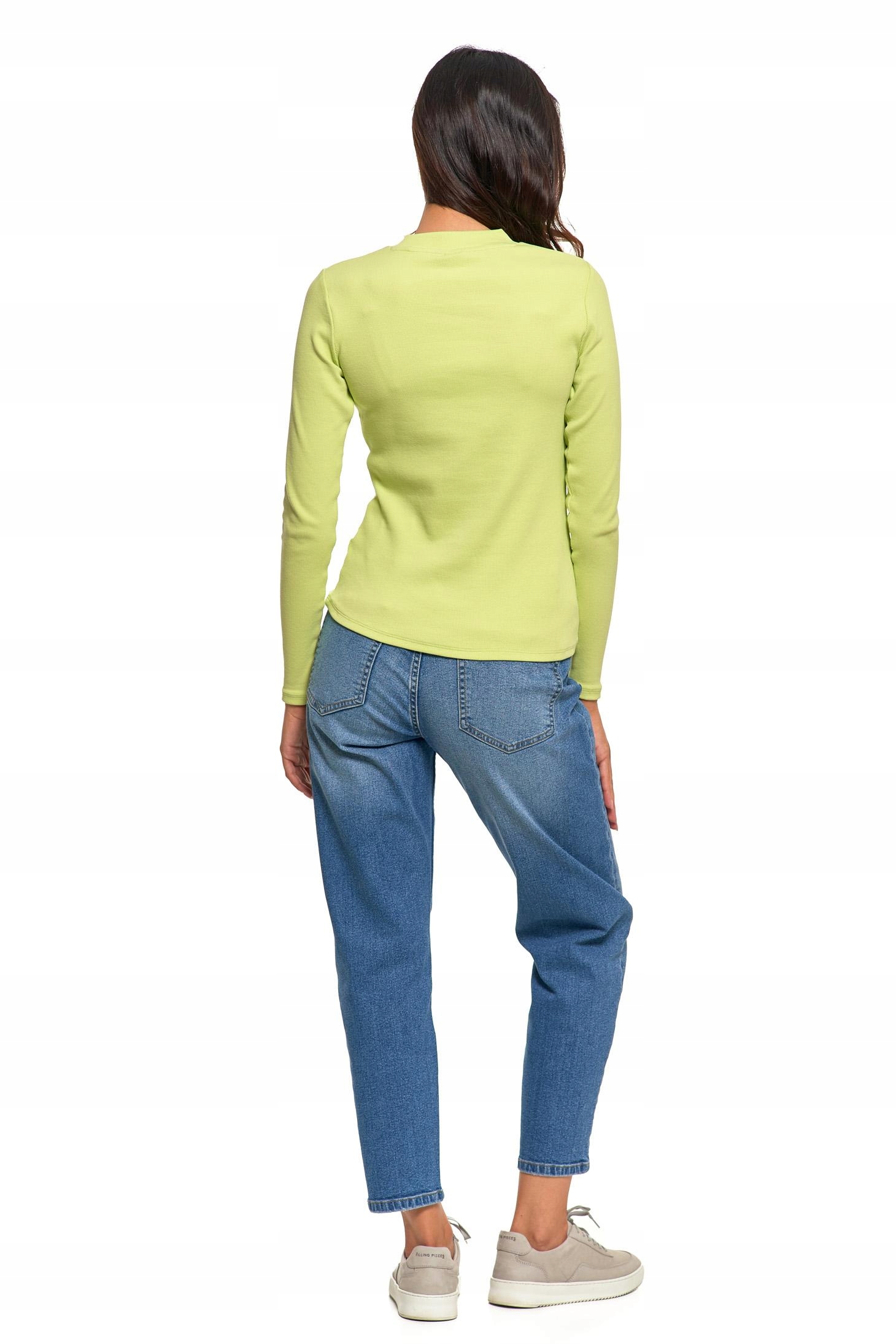 Prążkowana BLUZKA DAMSKA Ze Stójką Bawełniana na Długi Rękaw MORAJ