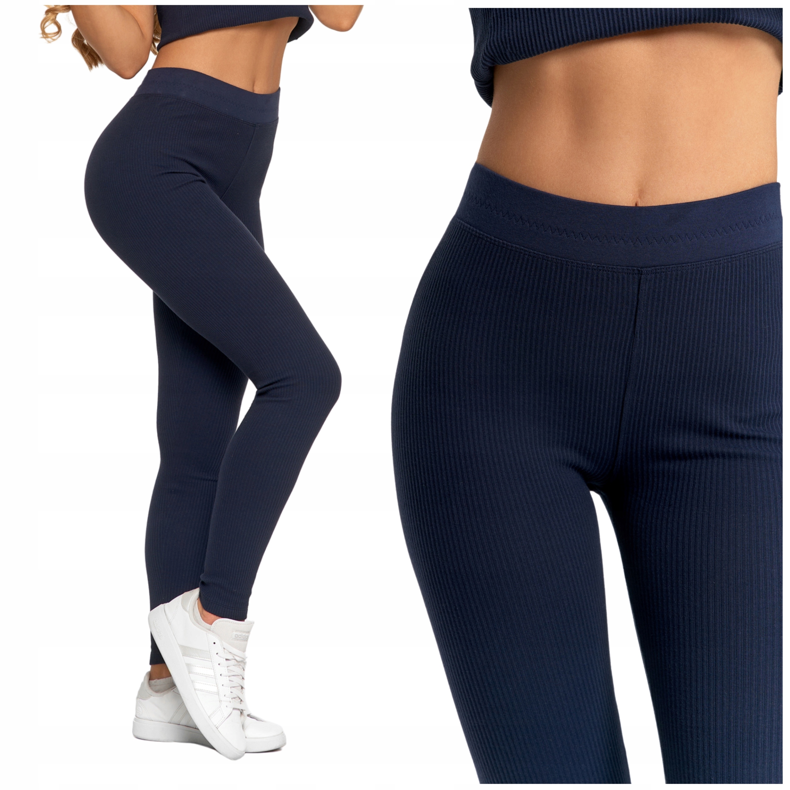 Prążkowane LEGGINSY DAMSKIE Bawełniane Długie Getry Kryjące Modne MORAJ