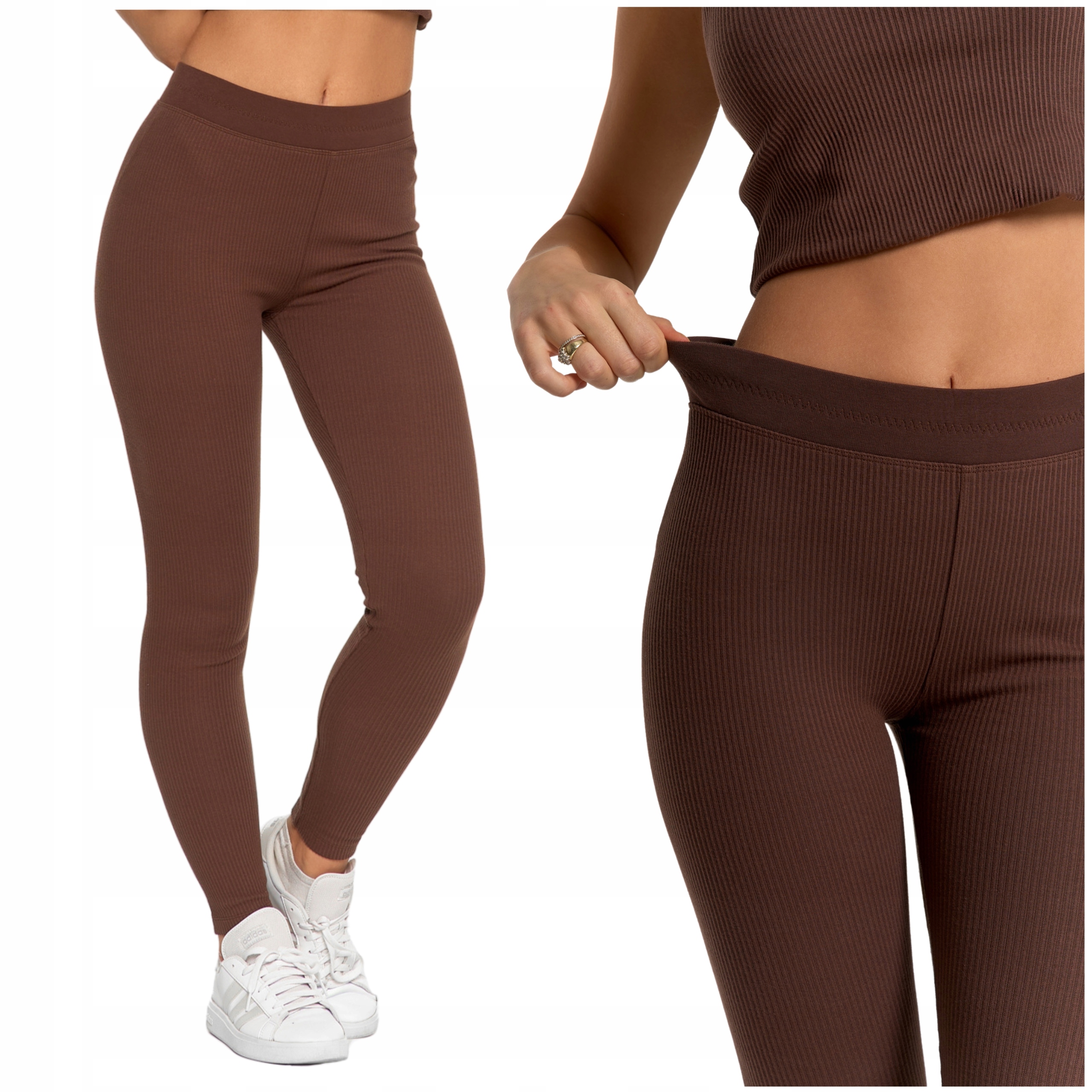 Prążkowane LEGGINSY DAMSKIE Bawełniane Długie Getry Kryjące Modne MORAJ
