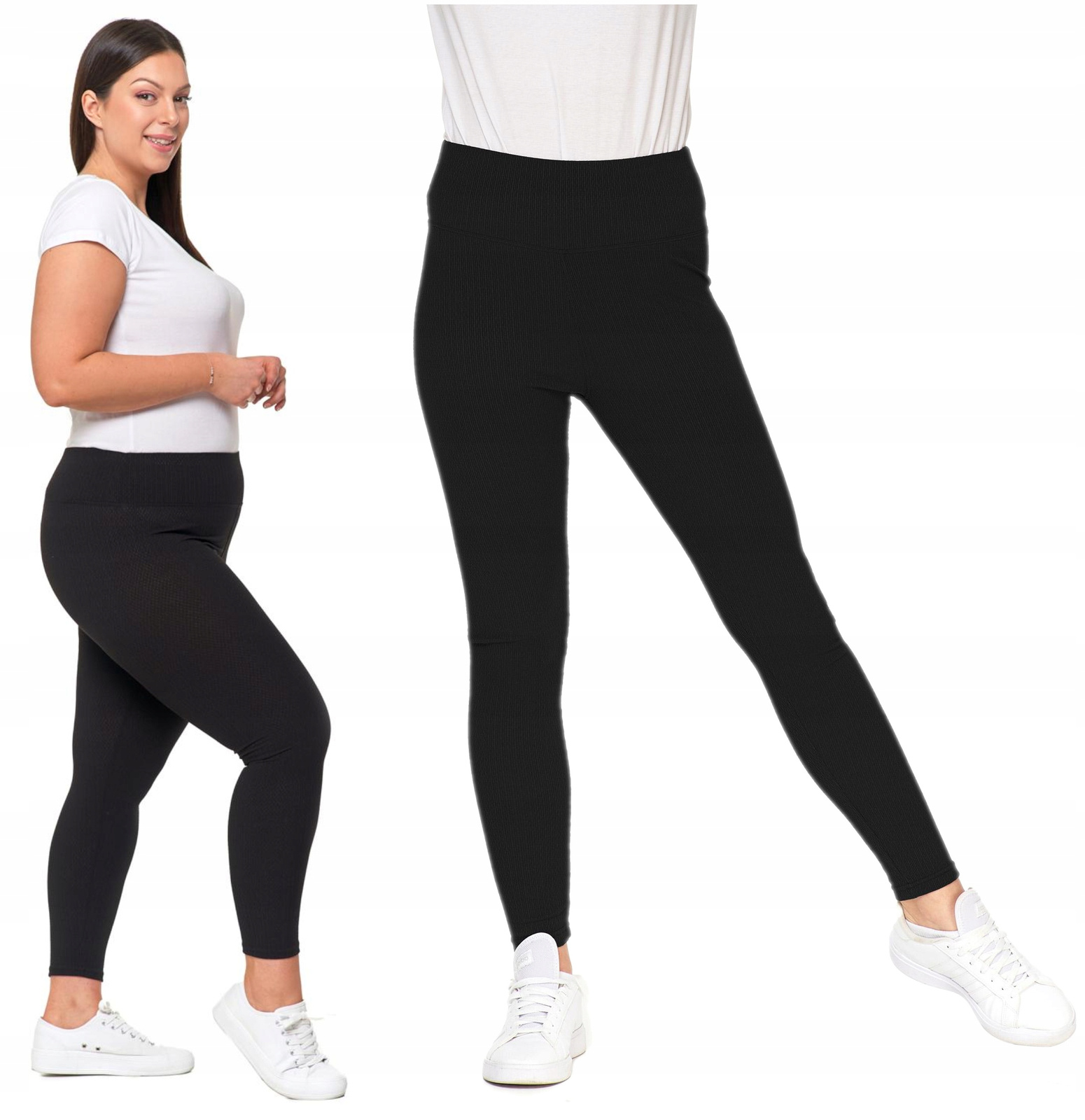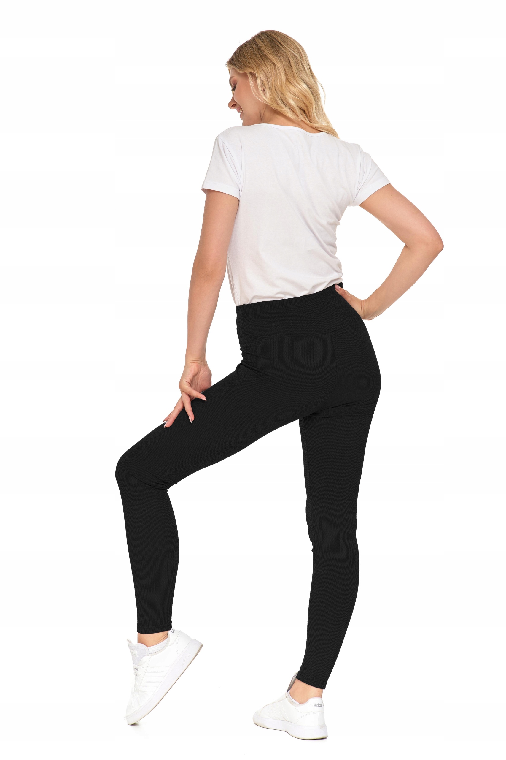 Prążkowane Legginsy Długie Damskie Wysoki Stan Kryjące Wygodne MORAJ