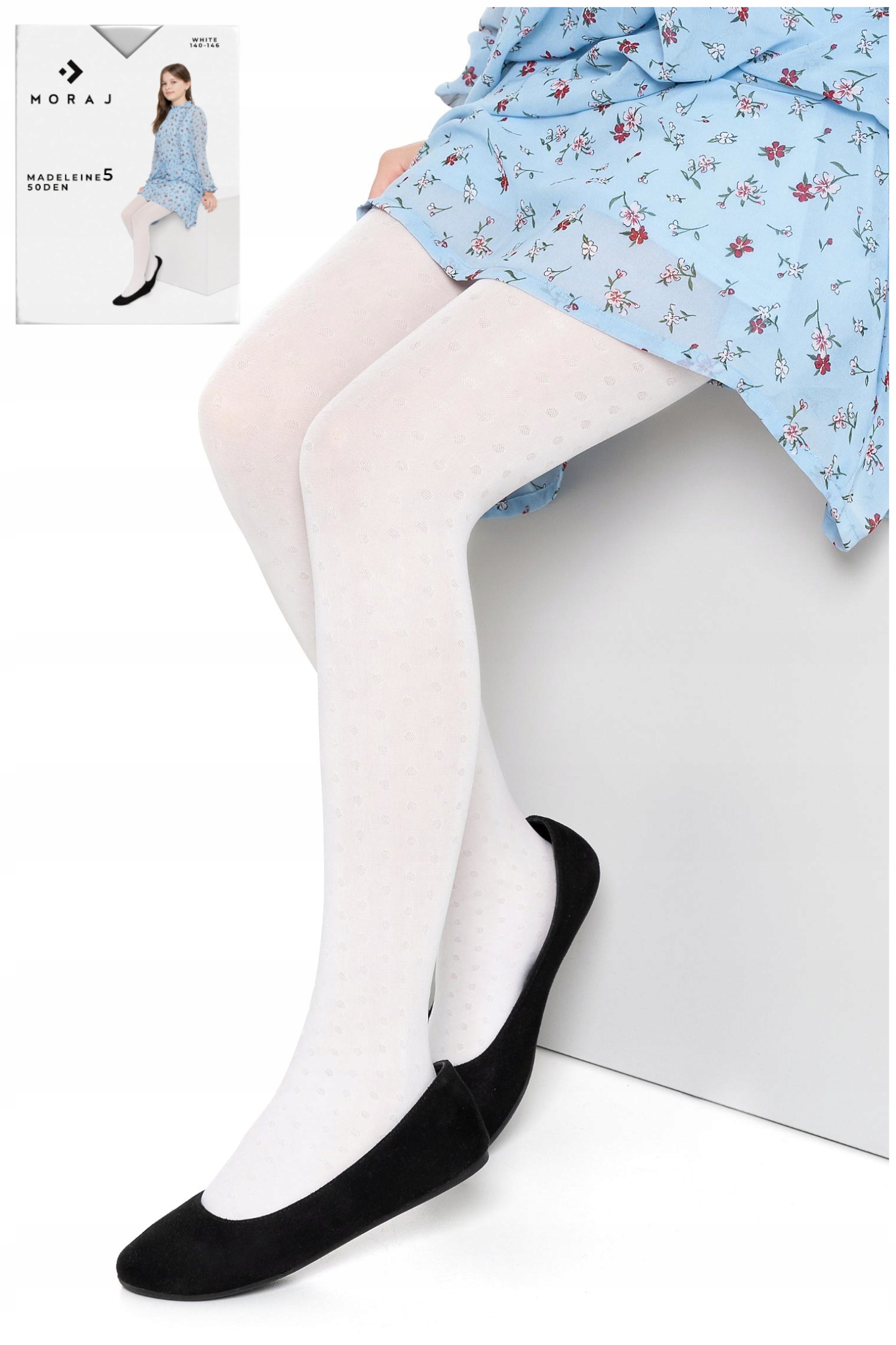 Rajstopy Dziewczęce 50 DEN Białe w Delikatny Wzór Komunia MORAJ