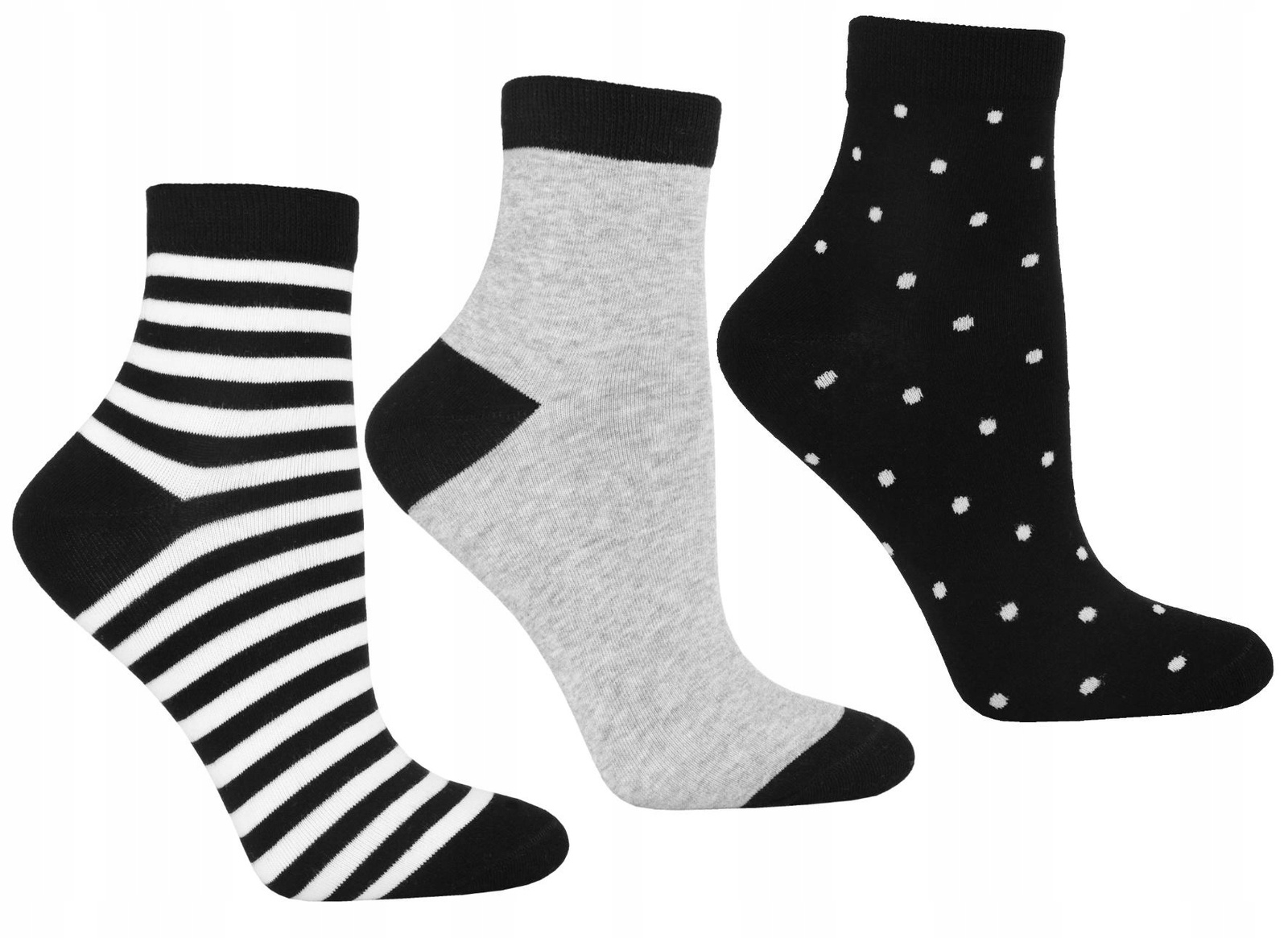 Skarpetki 3/4 Damskie Za Kostkę Gładkie Groszki Paski 3-PAK MORAJ