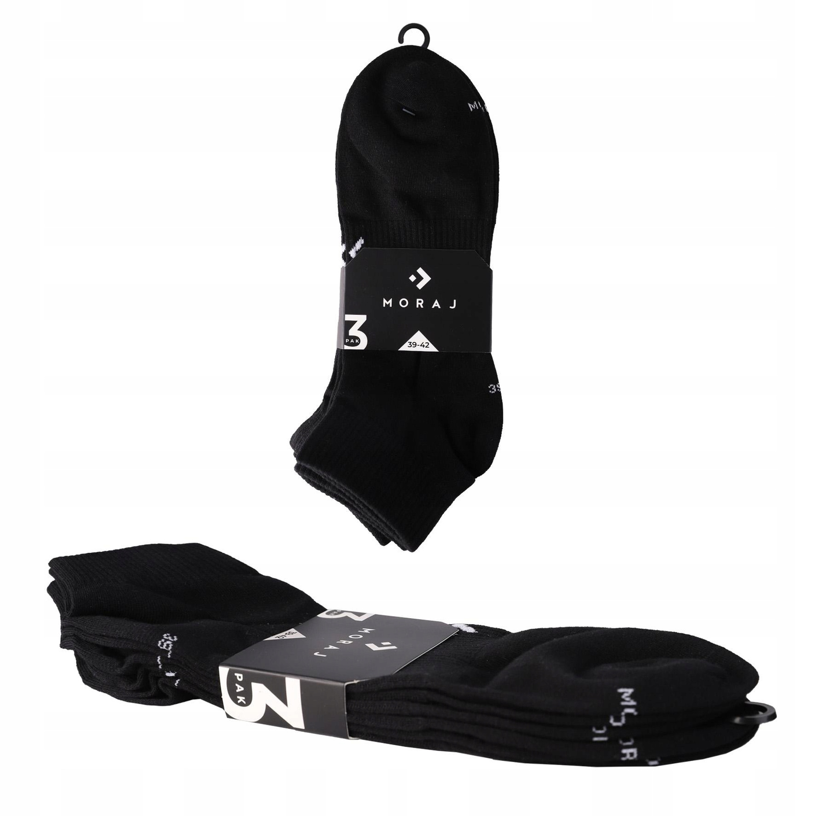 Skarpetki 3/4 Męskie Czarne Za Kostkę Klasyczne Gładkie 9 PAK MORAJ