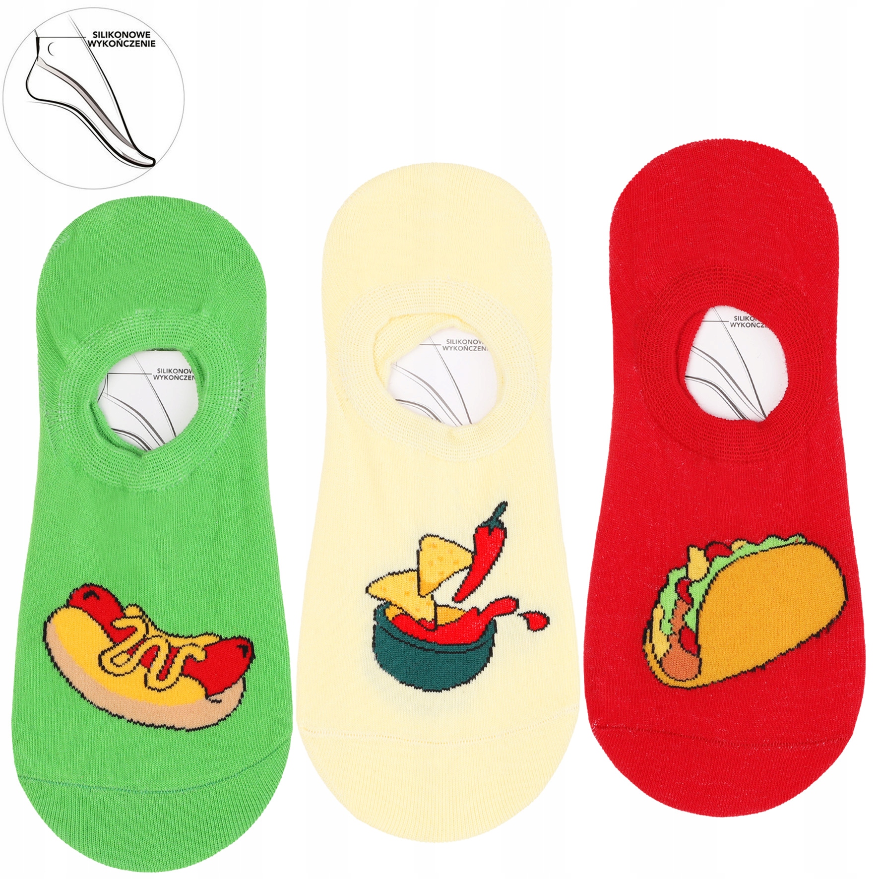 Dodaj odrobiny humoru i koloru do swojej garderoby! Te damskie skarpetki balerinki MORAJ w intensywnych barwach z motywem jedzenia to idealna propozycja dla kobiet, które lubią bawić się modą i cenią wygodę.