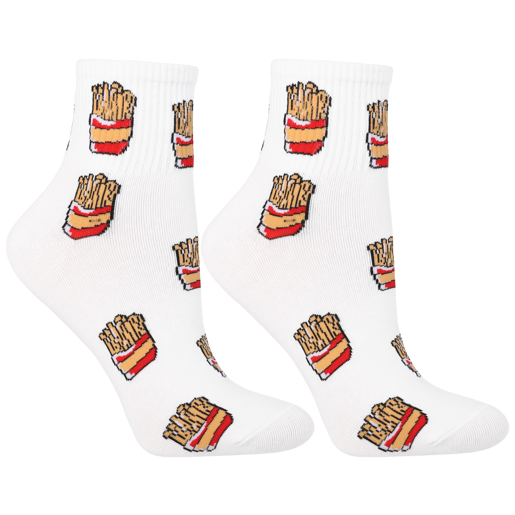 - Zestaw 3 par – każda z innym, zabawnym wzorem: pączki, frytki i pizza.