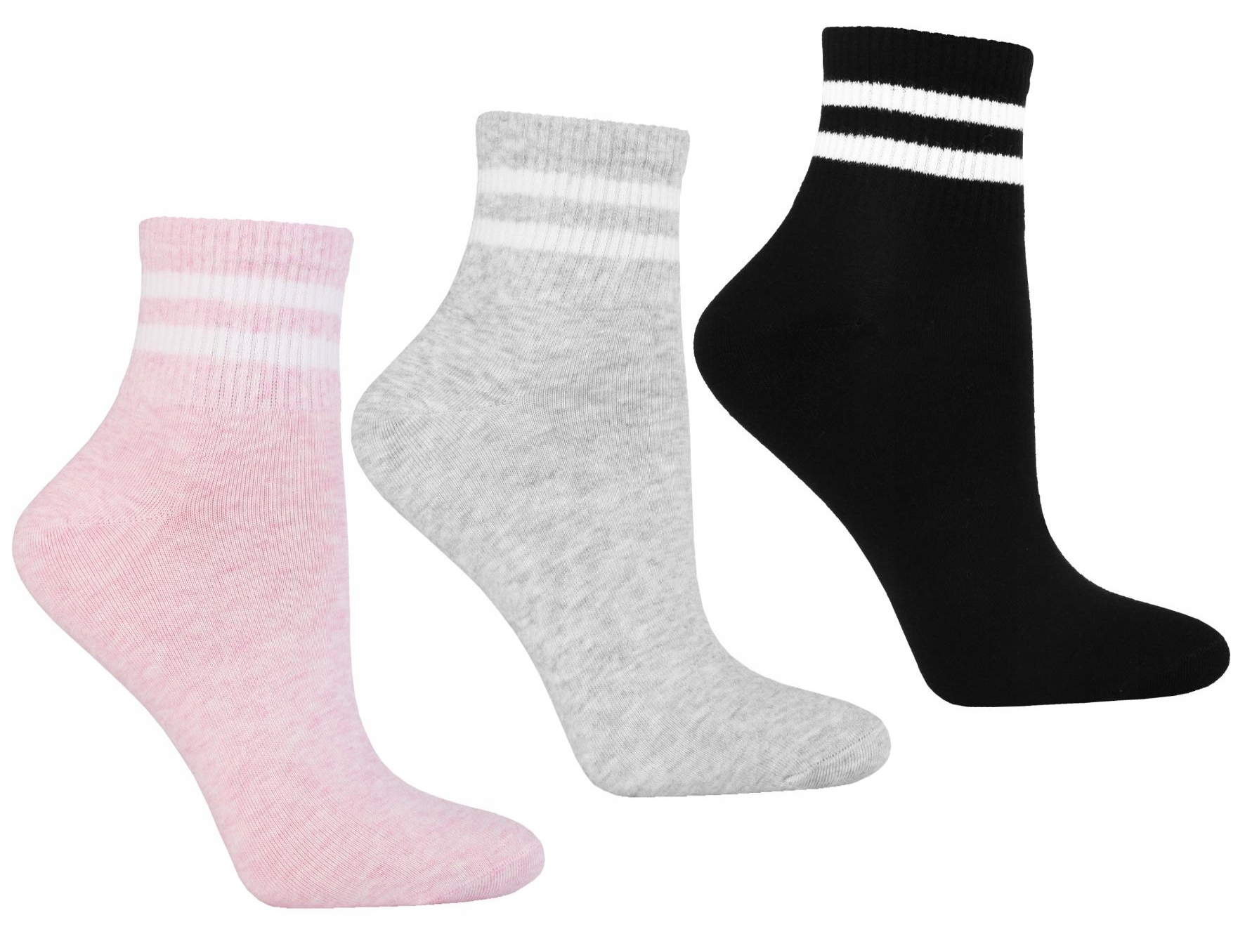 SKARPETKI DAMSKIE 3/4 Za Kostkę Klasyczne Ściągacz w Paski 3PAK MORAJ