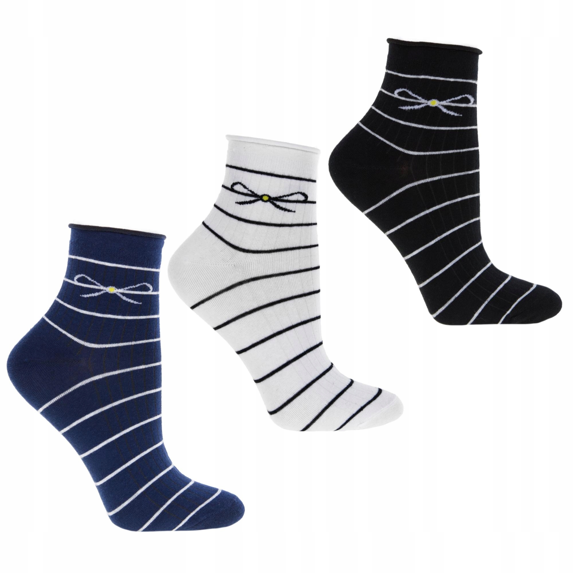 SKARPETKI DAMSKIE 3/4 Za Kostkę Klasyczne w Paski Kokardki 3PAK MORAJ