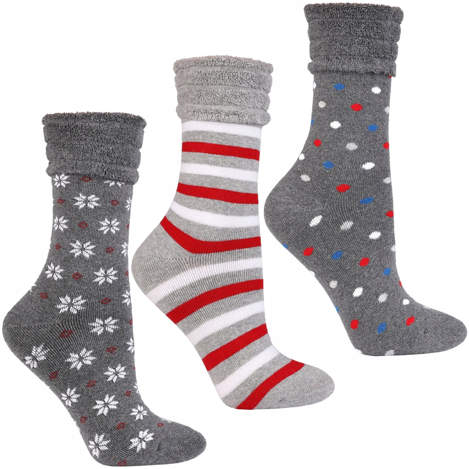 Zimowe skarpety damskie długie frotte to niezbędny element garderoby podczas chłodniejszych miesięcy. Zestaw 3-par skarpet doskonale sprawdzi się w sezonie zimowym, dostarczając wyjątkowego komfortu i ciepła. Oto, dlaczego zimowe świąteczne skarpety są warte uwagi: