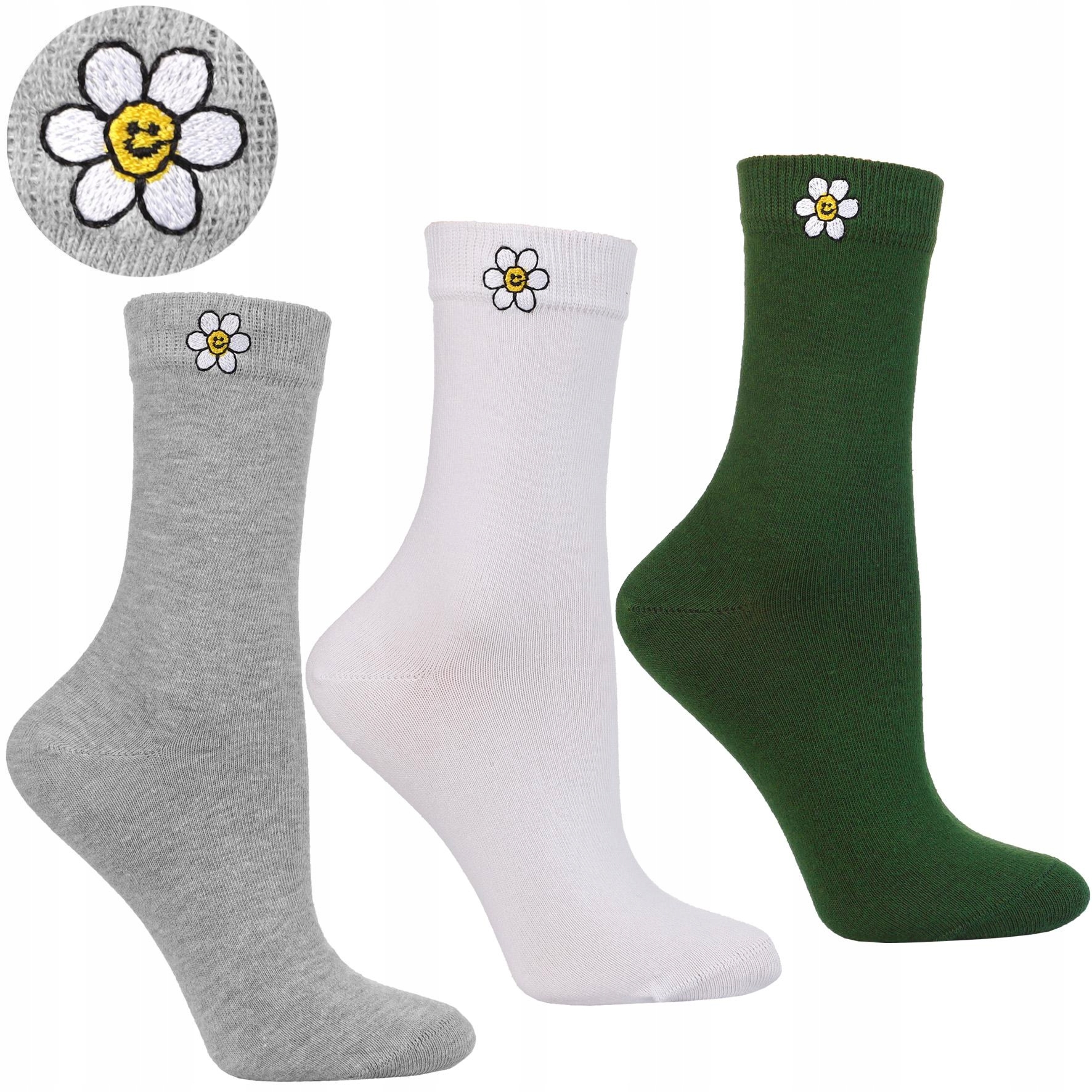 Skarpetki Damskie Modne Haft Skarpety Kwiatki MORAJ 3-pary