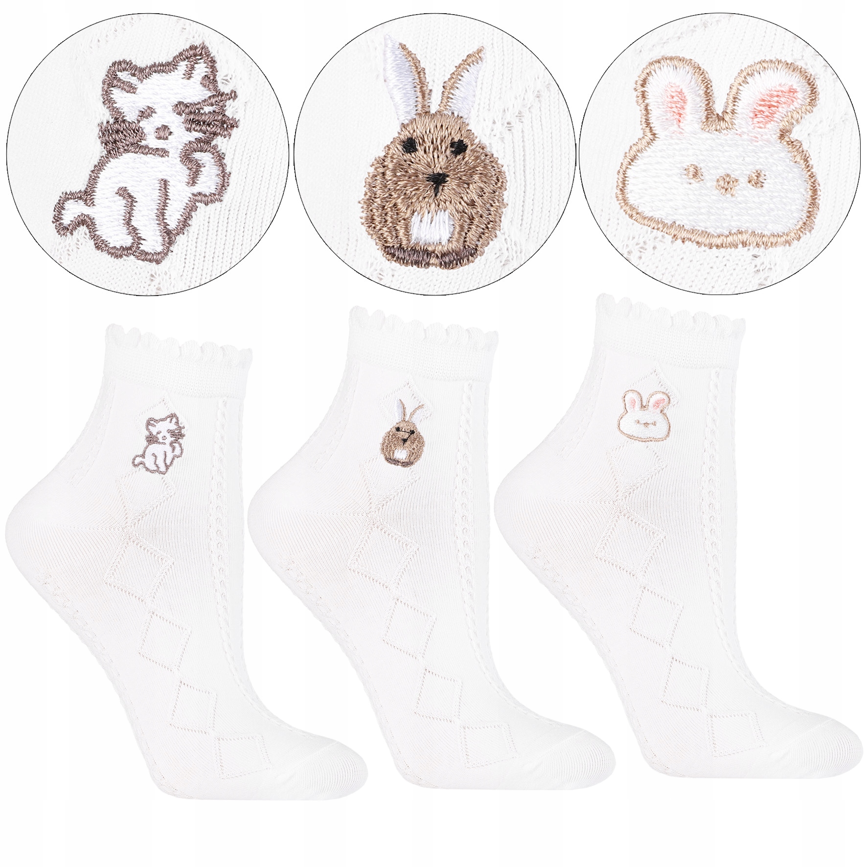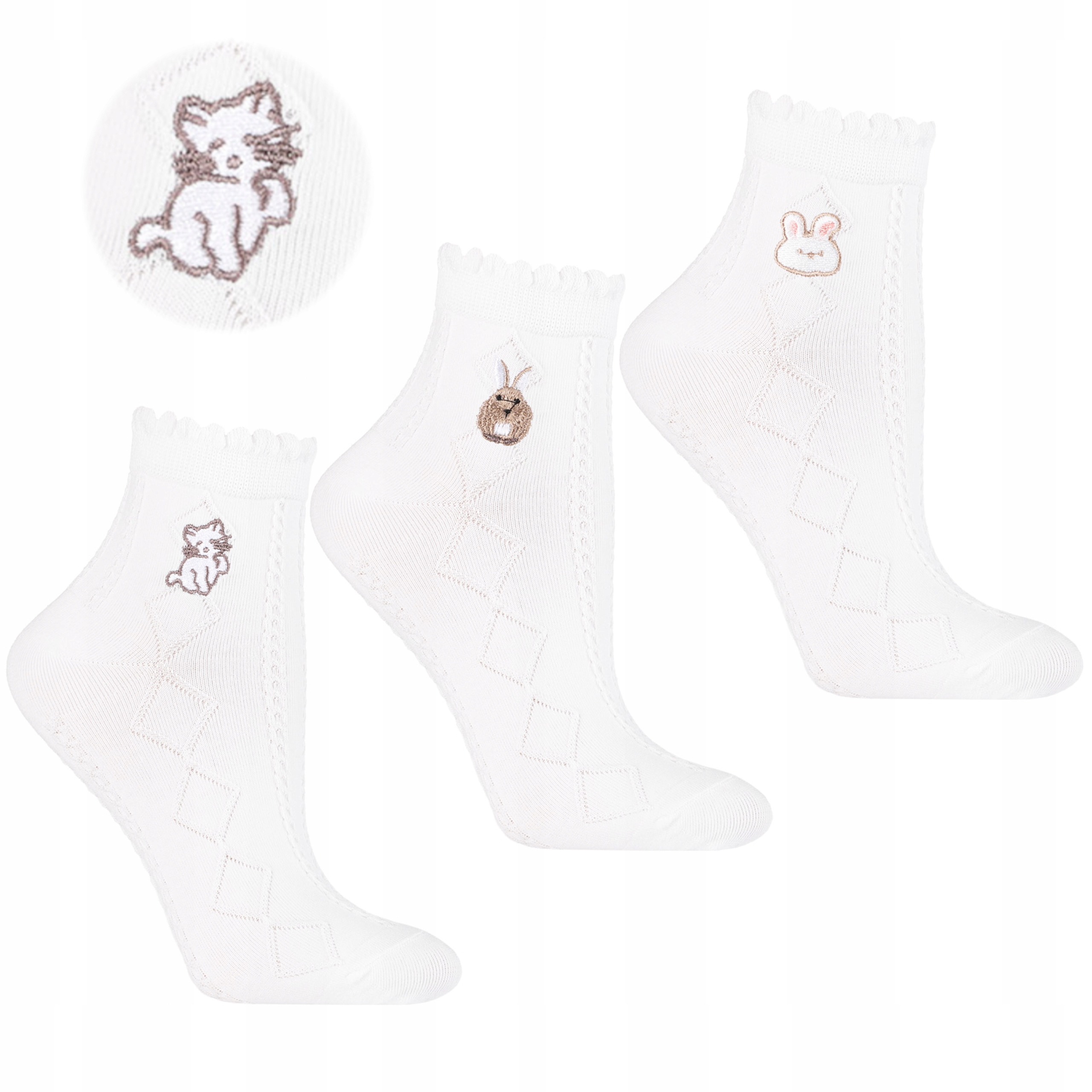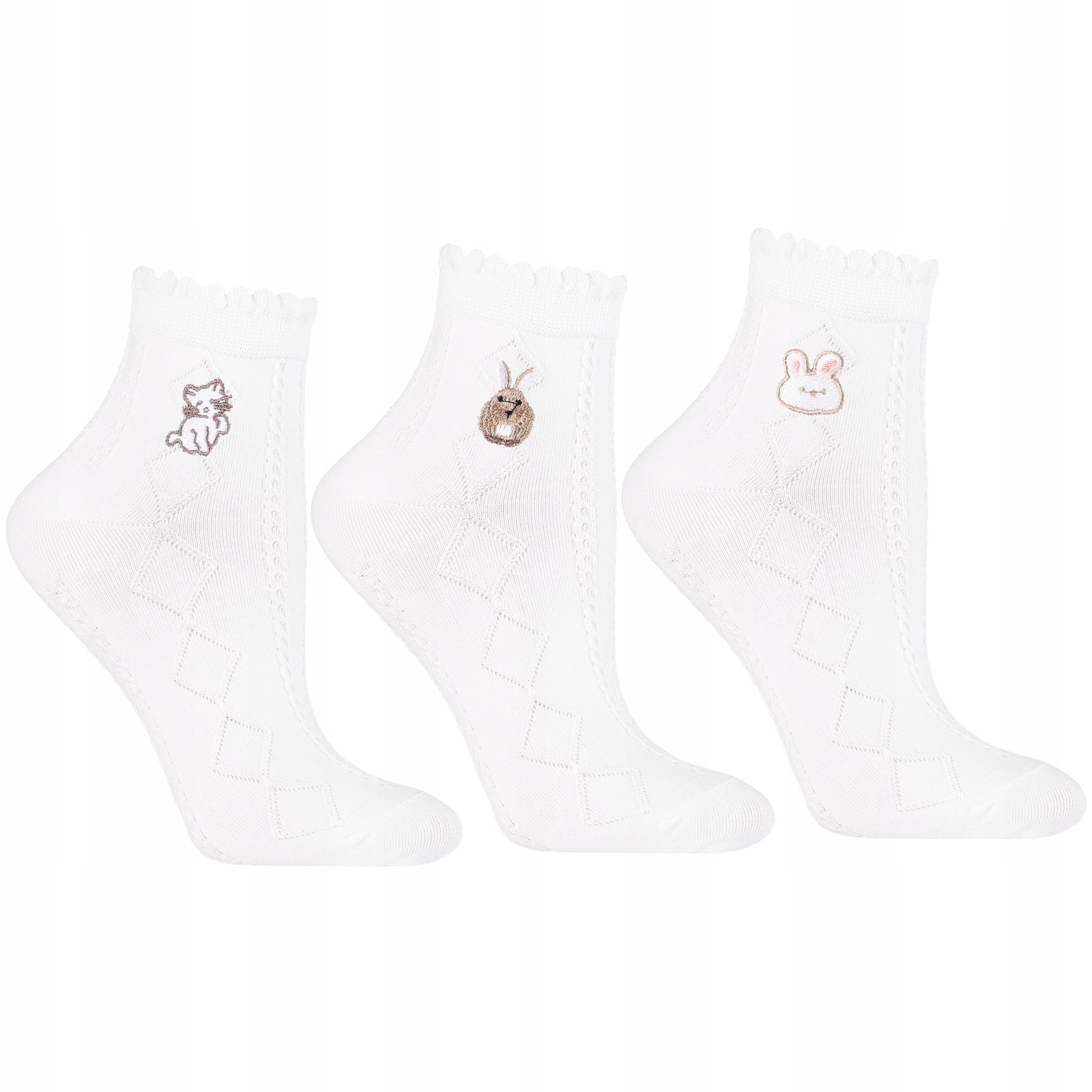 Skarpetki Damskie MORAJ Delikatne Skarpety Za Kostkę z Haftem 3-PARY
