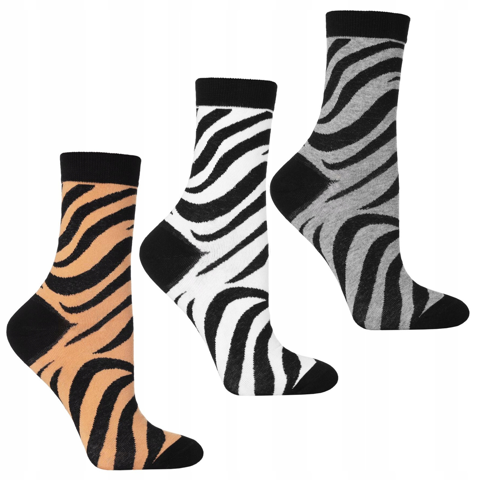Damskie skarpetki długie w zebrę 3-pak to idealne połączenie stylu i wygody.
