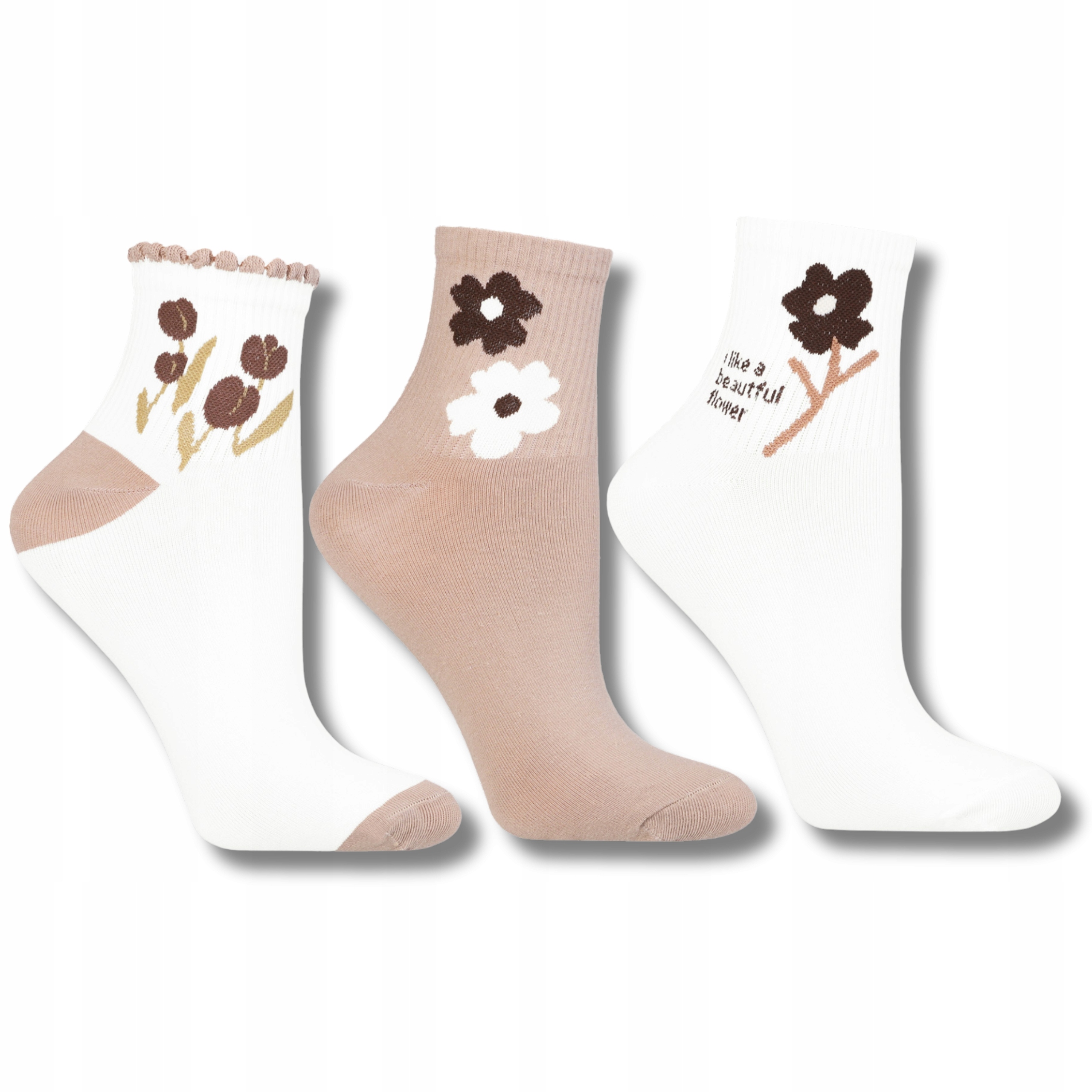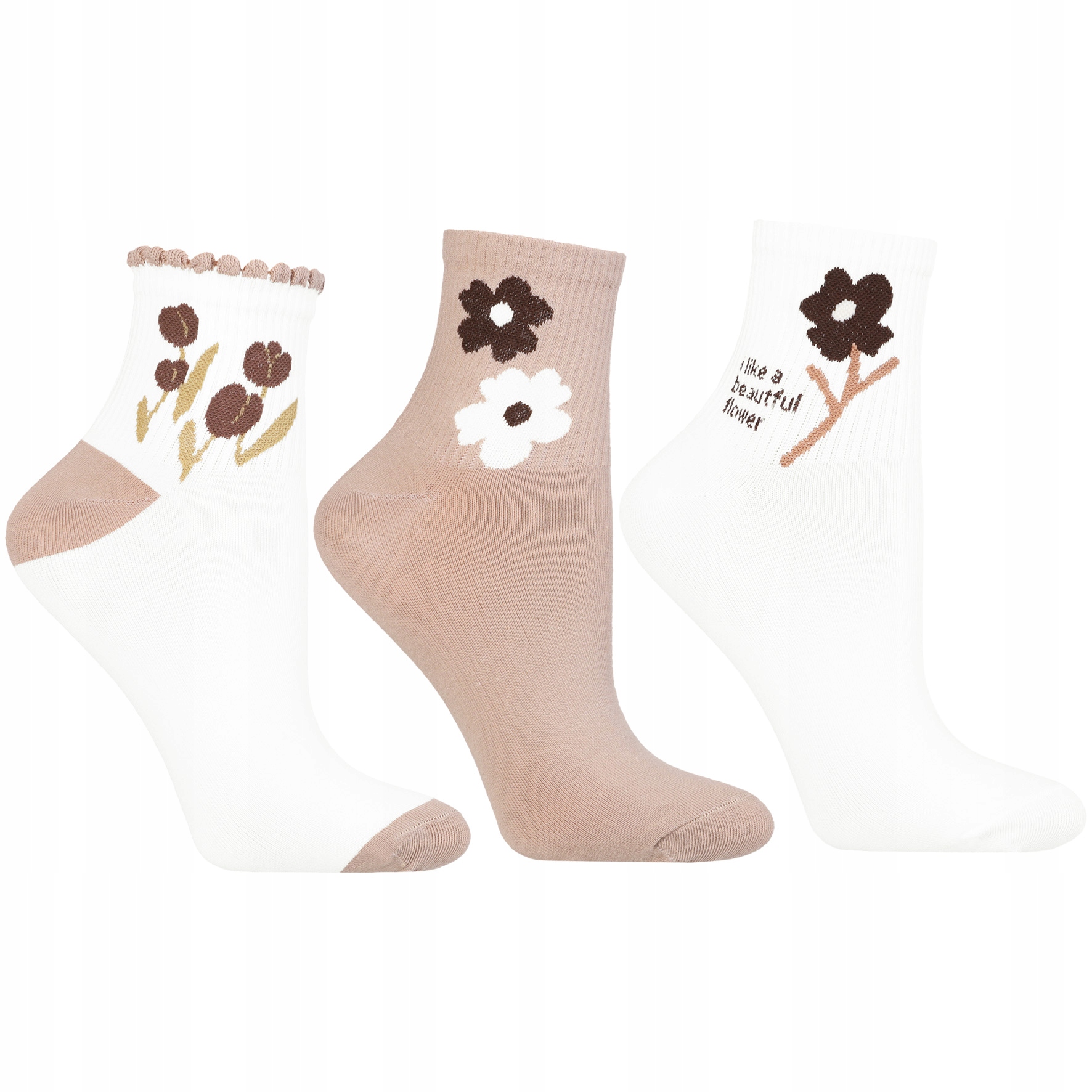 Skarpetki Damskie MORAJ Klasyczne Skarpety za kostkę Kwiatki 3-PAK