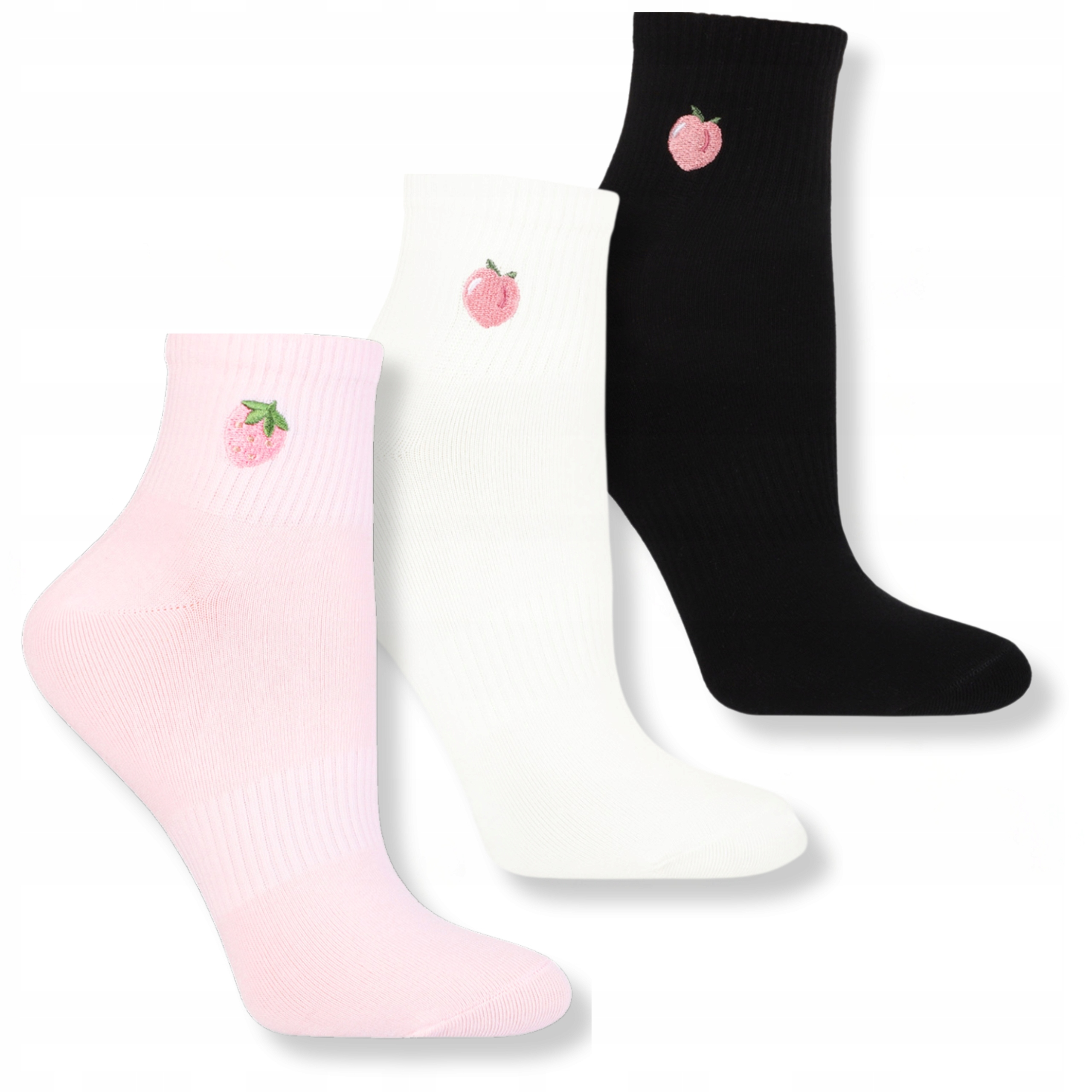 Skarpetki Damskie MORAJ Kolorowe Skarpety Za Kostkę z Haftem 3-PAK