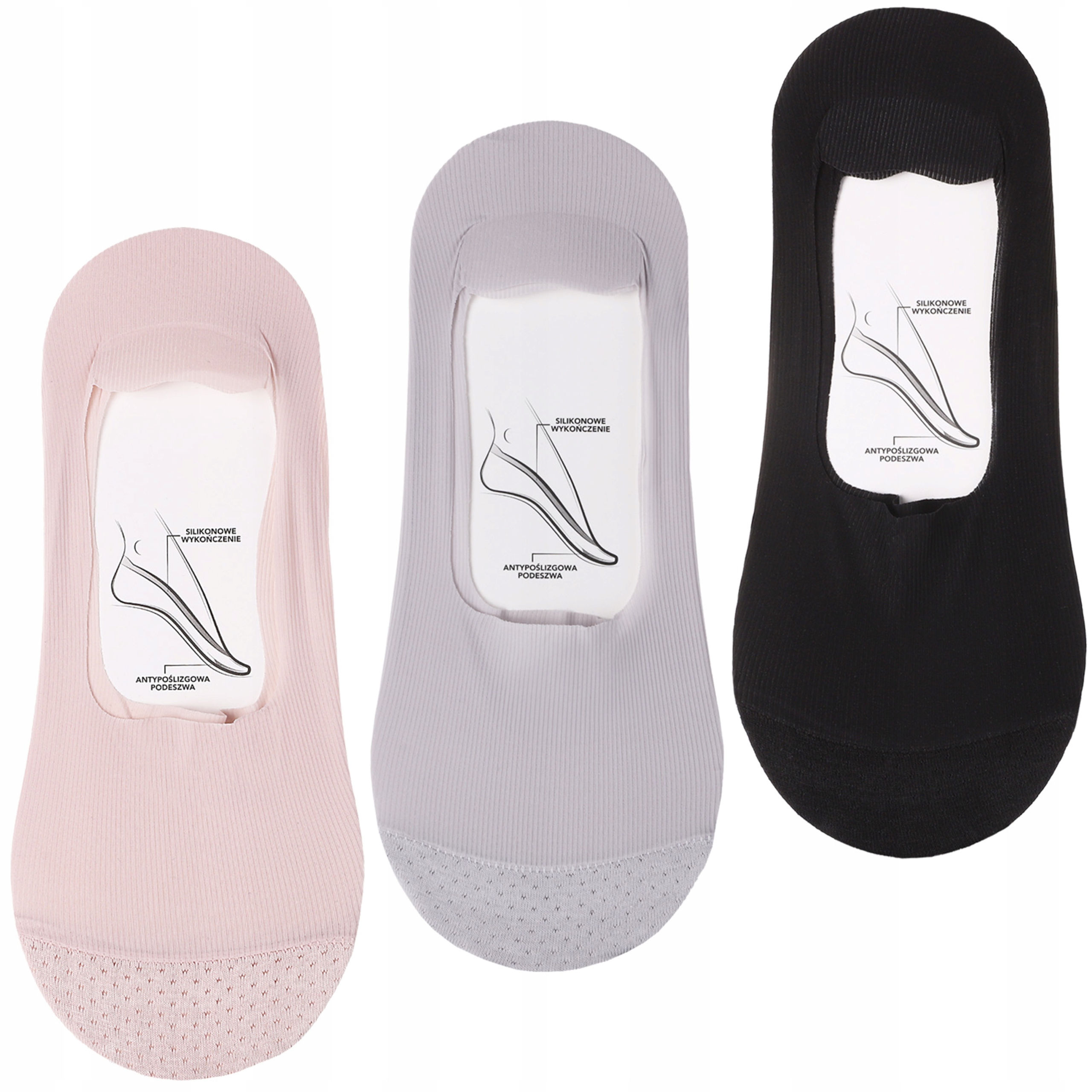 Skarpetki Damskie MORAJ Niskie Stopki Laserowo Cięte Prążek 3-pary