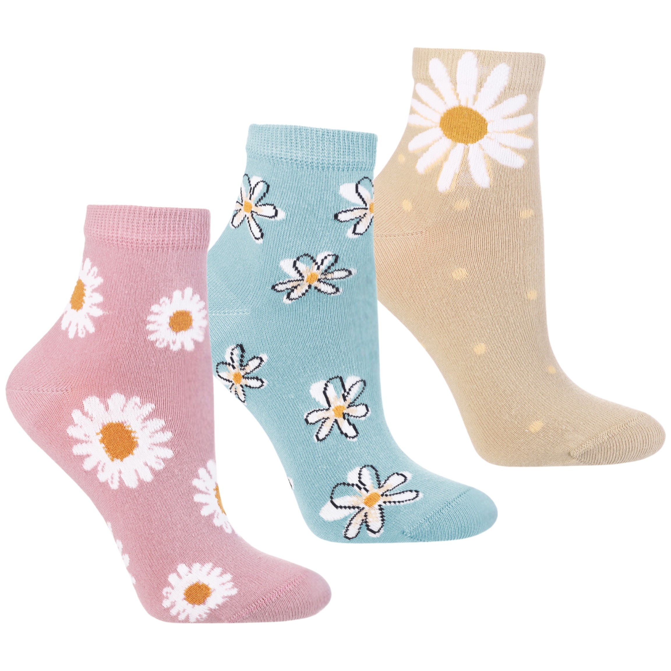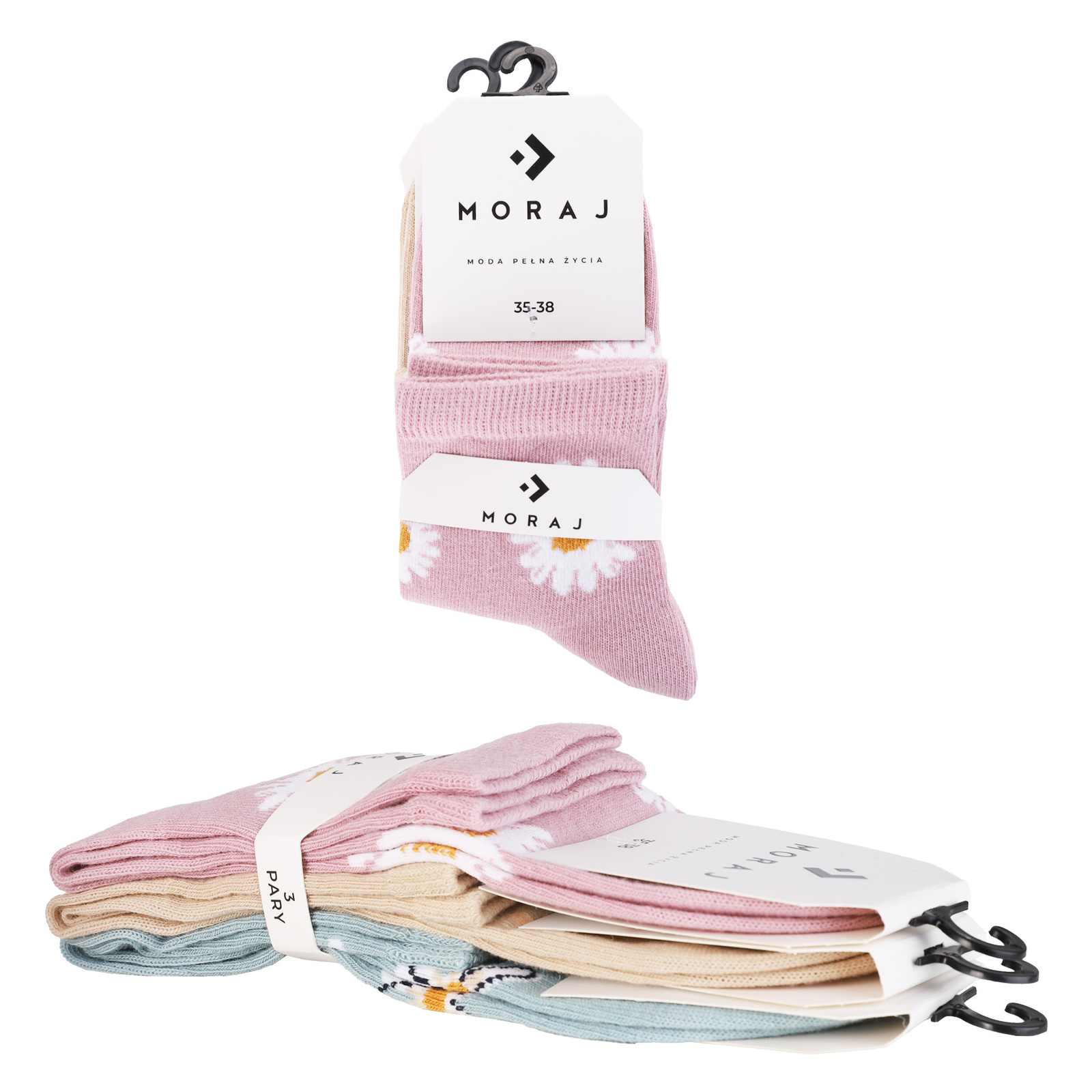 SKARPETKI DAMSKIE MORAJ SKARPETY 3/4 W KWIATY UROCZE ZESTAW 3 PARY