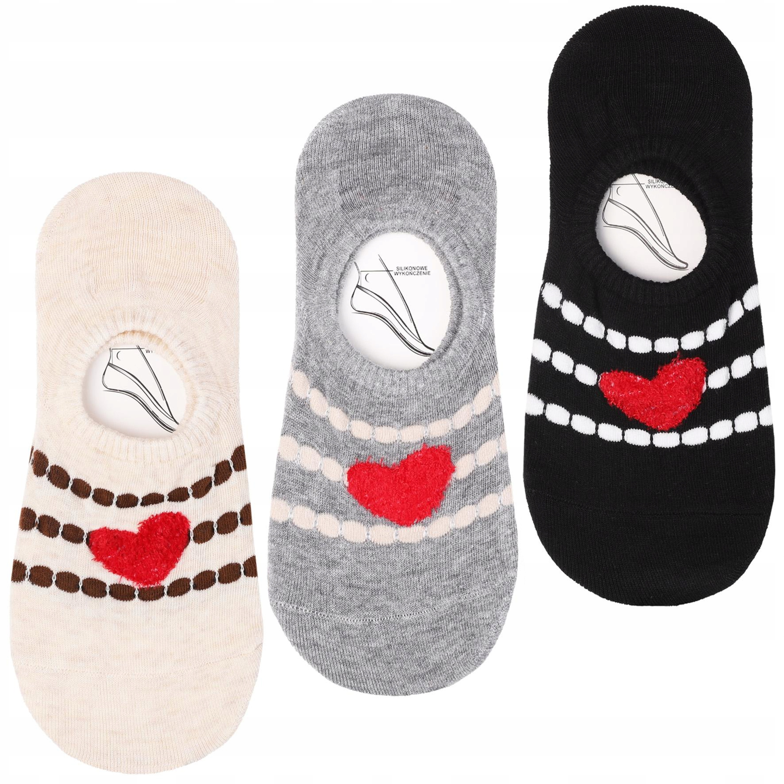 Skarpetki Damskie Niskie Stopki Urocze z Serduszkami MORAJ 3-PARY