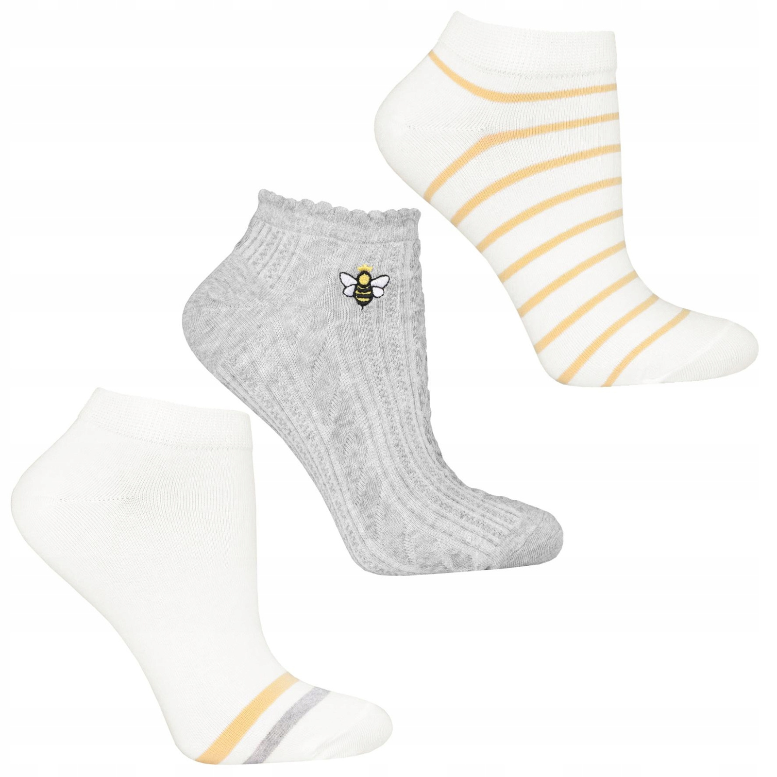 Skarpetki Damskie Stopki do Kostki Klasyczne HAFT Paski MORAJ 3-pary