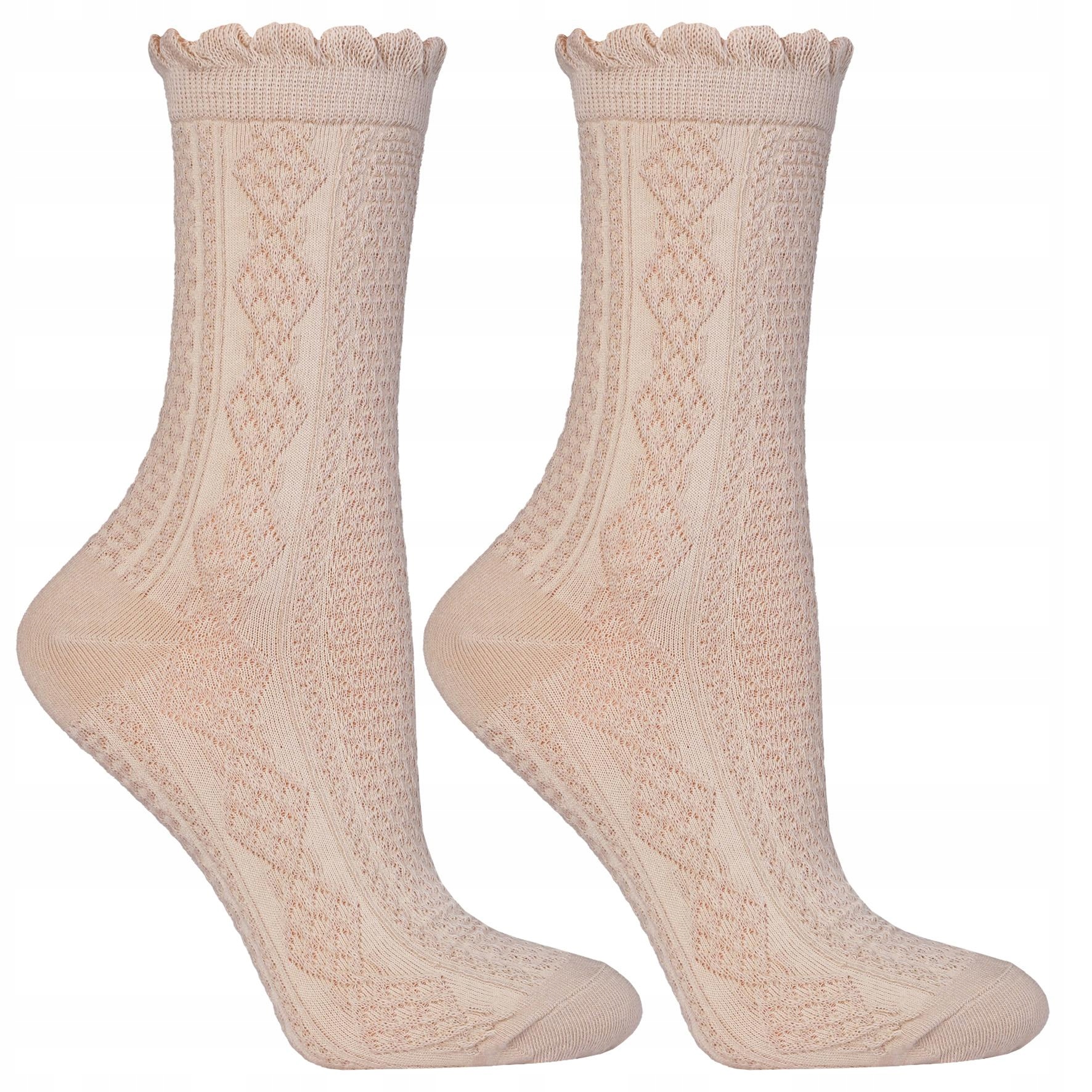 Skarpetki damskie uszyte z wysokiej jakości materiałów. Są miękkie i przyjemne w dotyku. Niewielka domieszka elastanu sprawia, że skarpetki są elastyczne i znakomicie dopasowują się do stopy. Zakończone są rozciągliwym ściągaczem, który skutecznie utrzymuje skarpetki na stopie, a jednocześnie nie powoduje ucisku