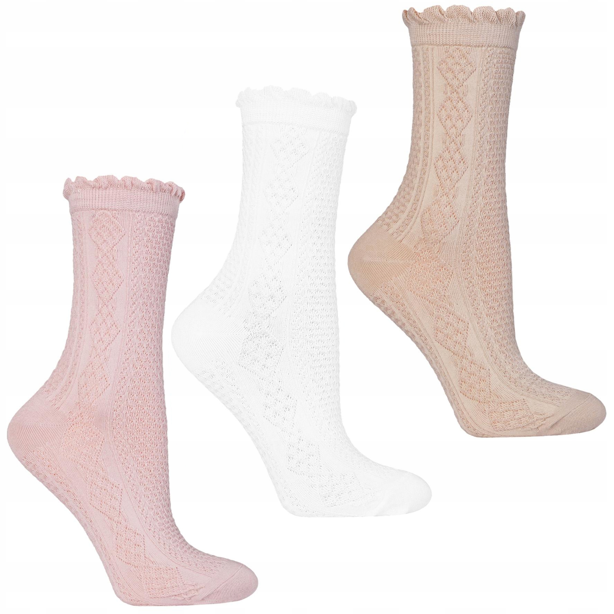 Skarpetki Damskie Wysokie Skarpety Delikatny Wzór Stylowe MORAJ 3-PAK