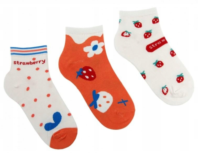 Skarpetki Damskie Za Kostkę 3/4 Truskawki Kolorowe MORAJ 3-pary