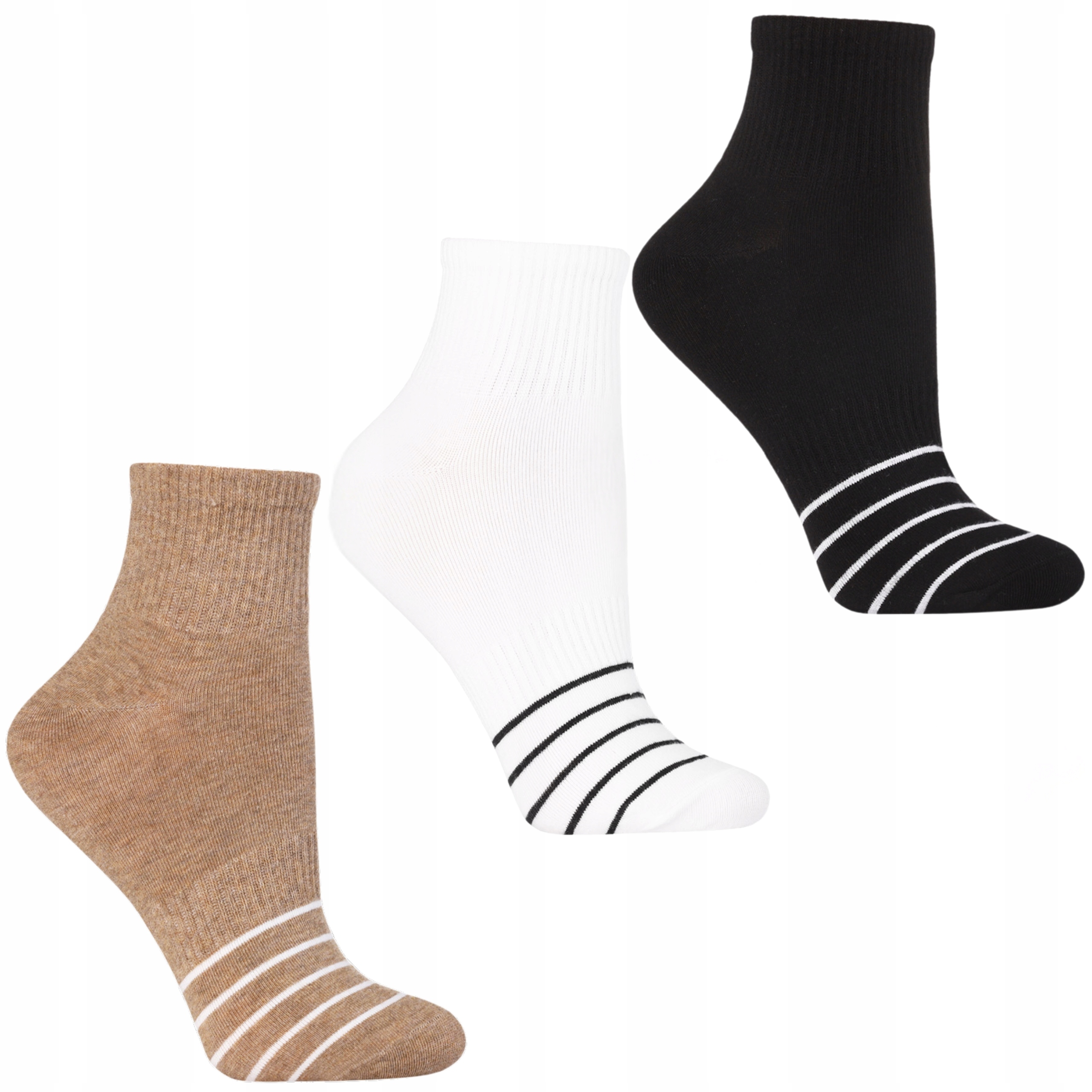 Skarpetki Damskie Za Kostkę Skarpety Prążkowane w Paski MORAJ 3-PARY
