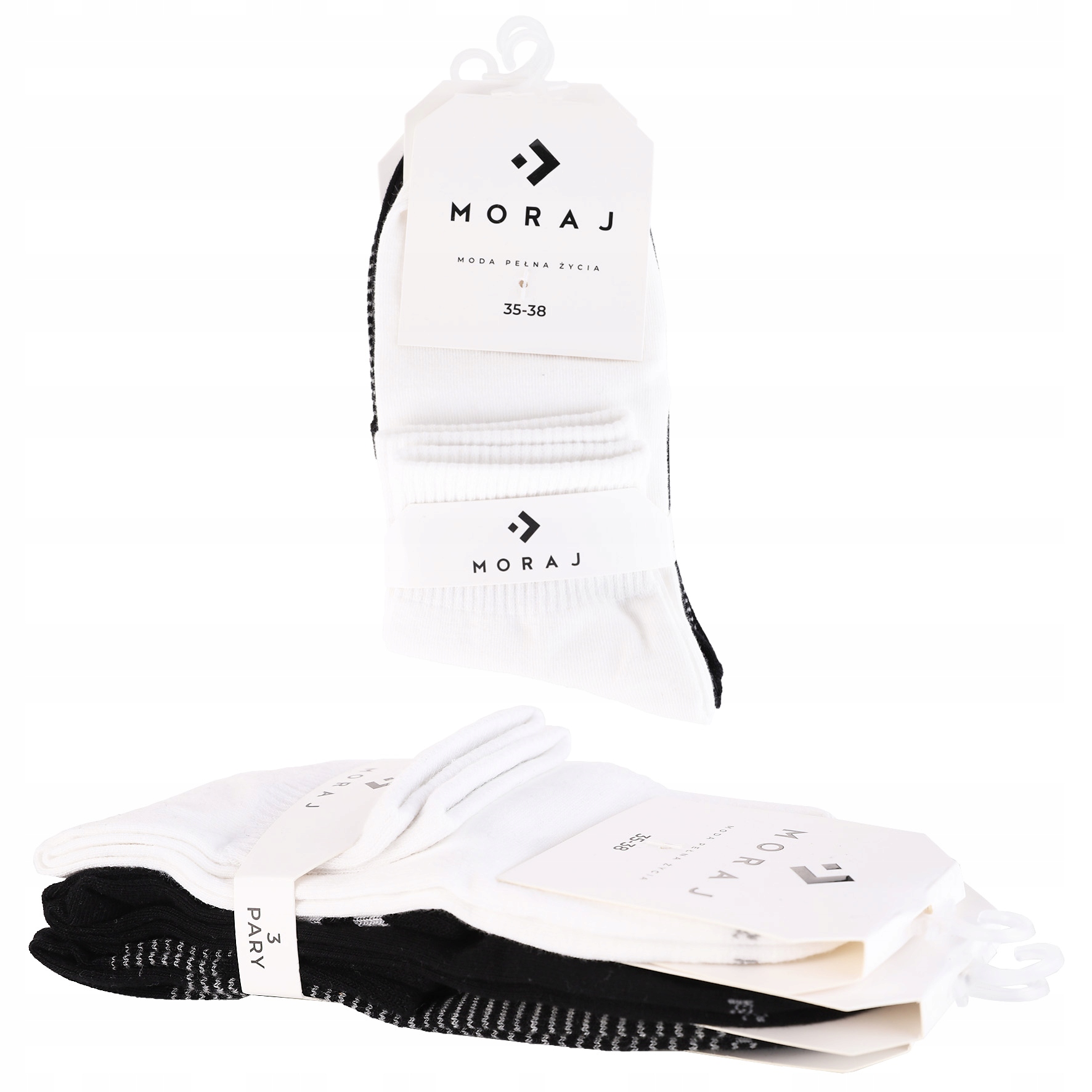 Skarpetki Damskie Za Kostkę Skarpety Prążkowany Ściągacz MORAJ 3-PARY