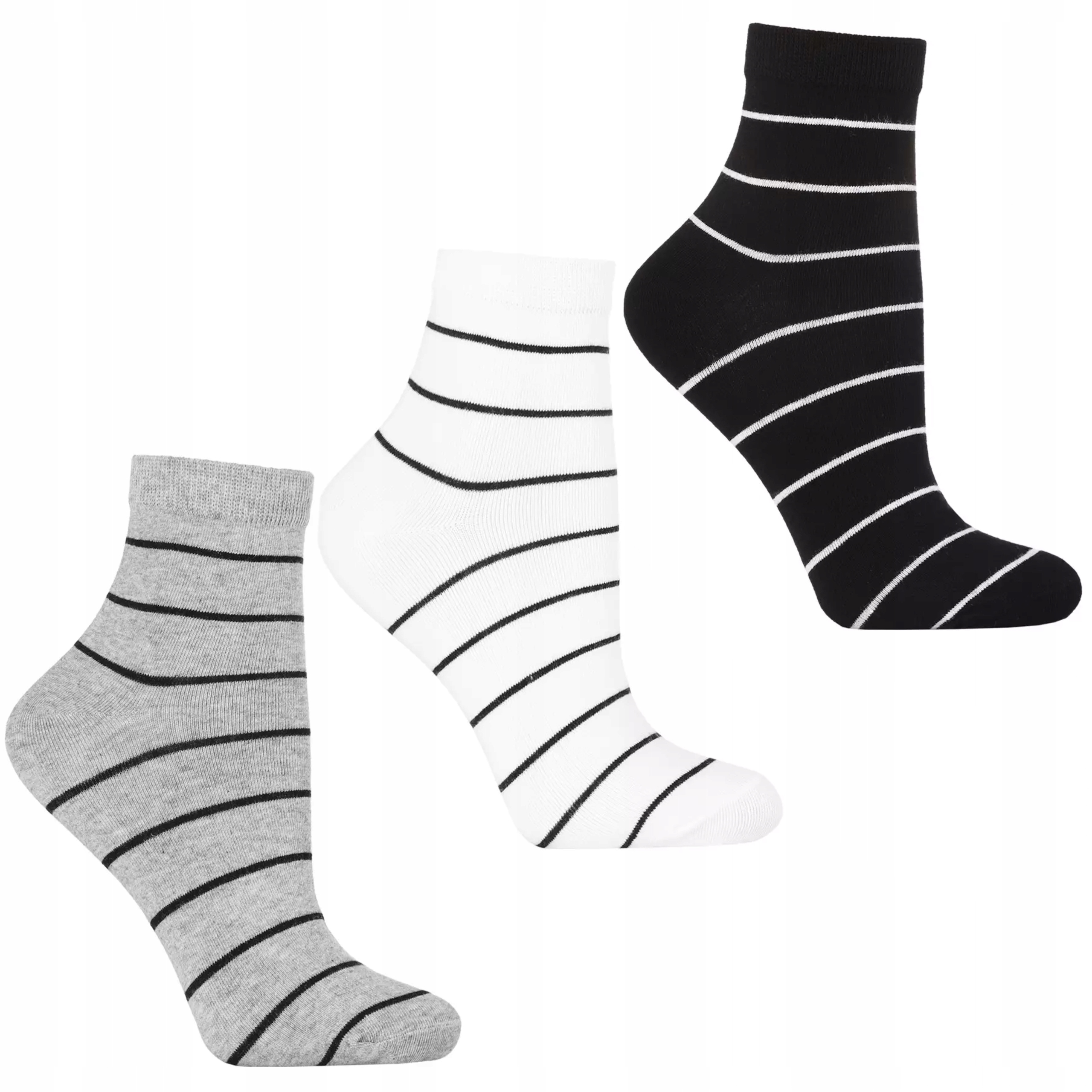 Skarpetki Damskie Za Kostkę Skarpety w Paski MORAJ Zestaw 3-PARY