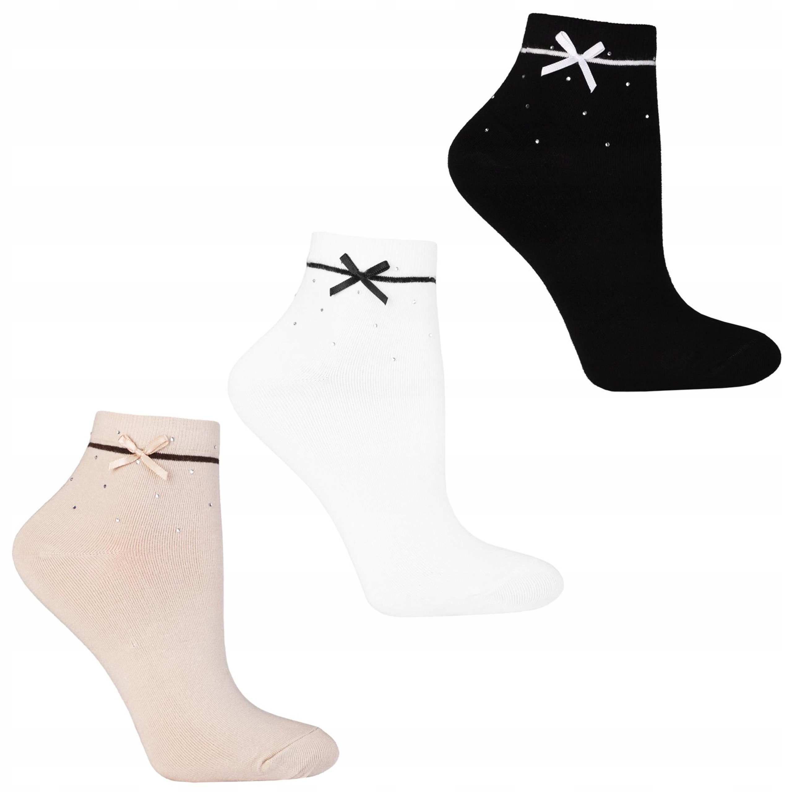 Skarpetki Damskie za Kostkę Urocze Kryształki Kokardka 3-PAK MORAJ