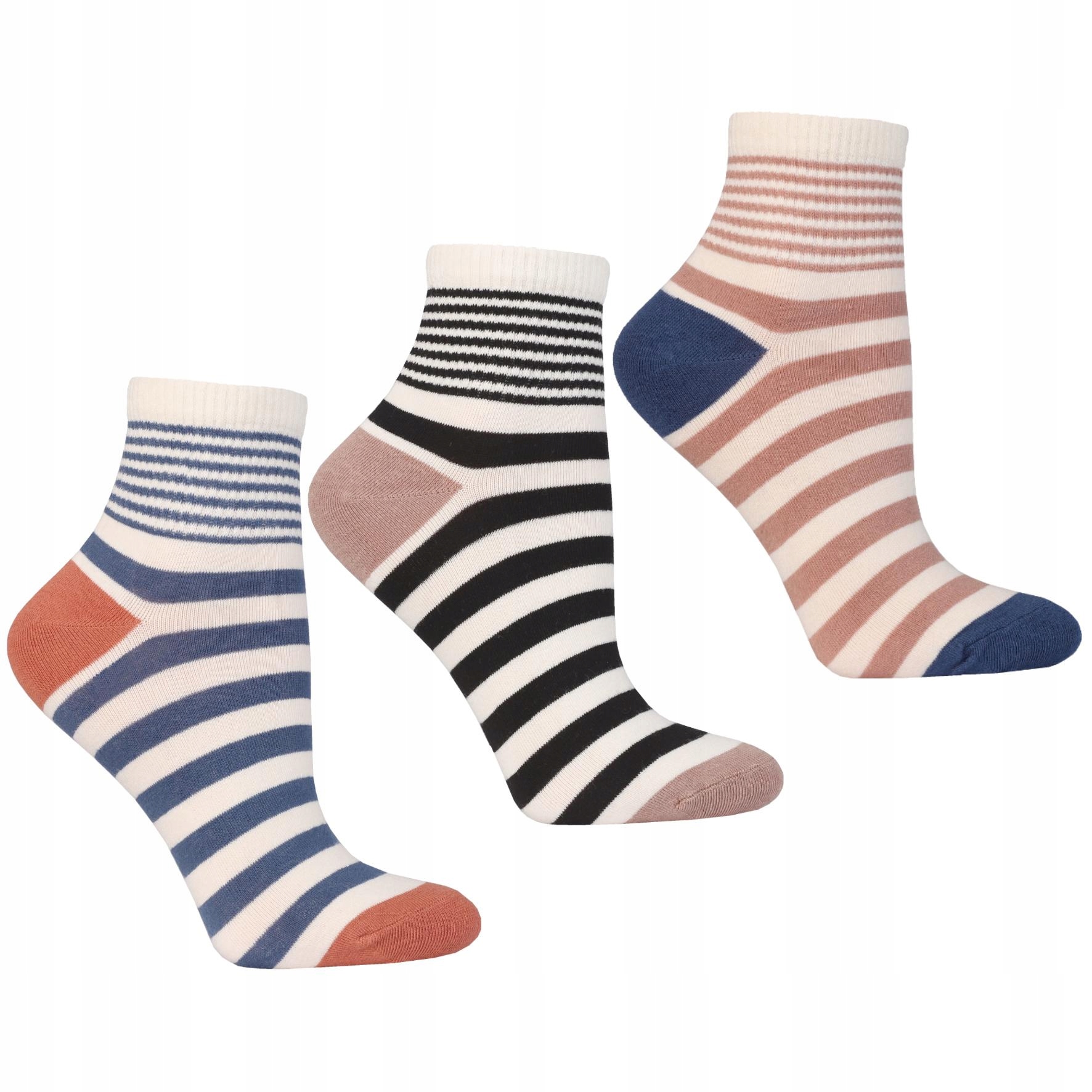 Skarpetki Damskie za Kostkę Wysokie 3/4 Paski Bawełniane 3-pary MORAJ