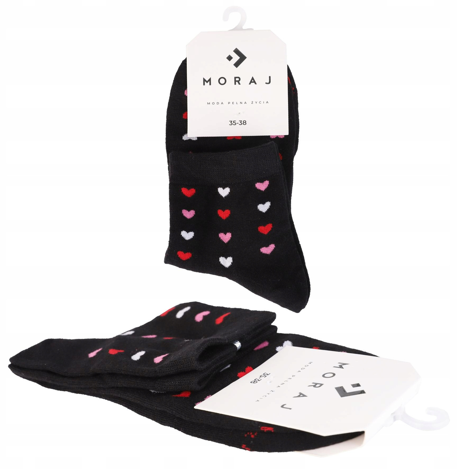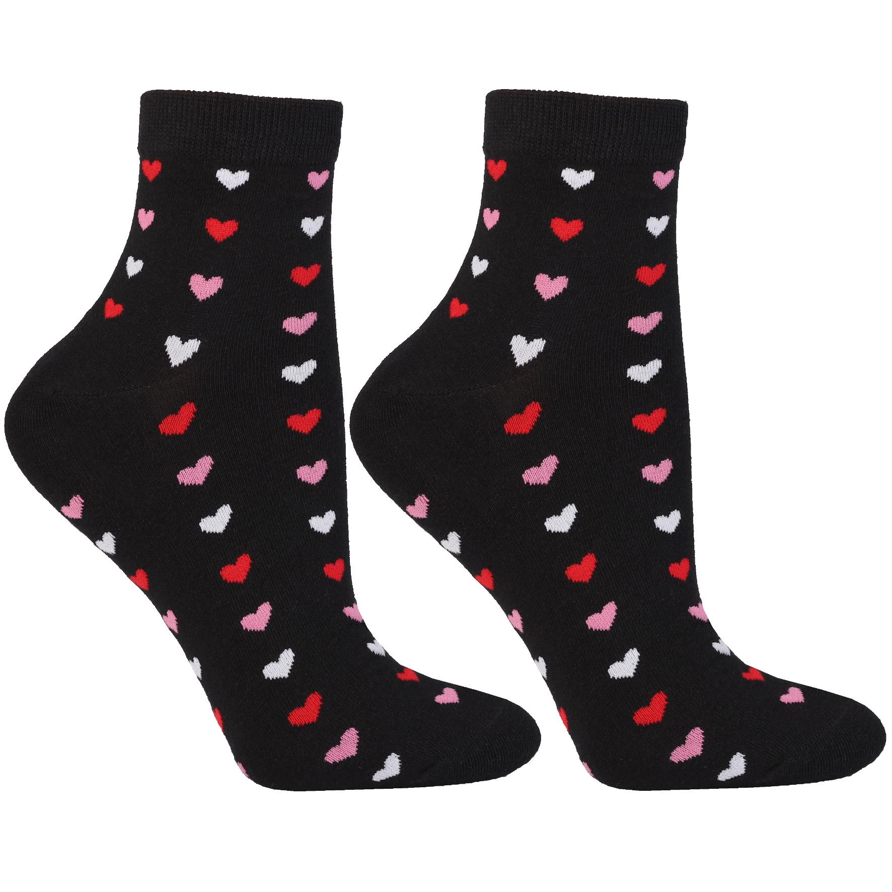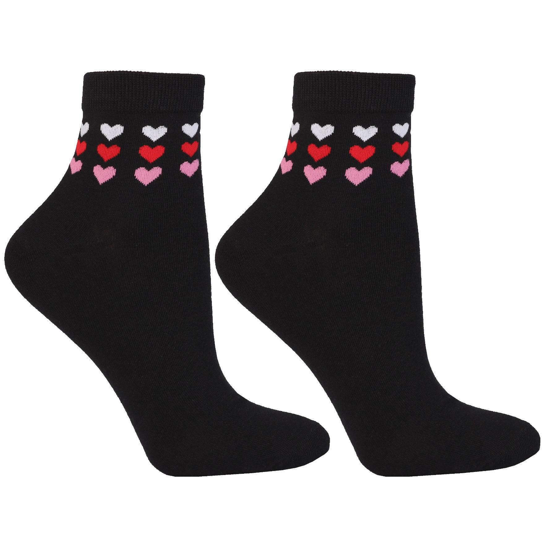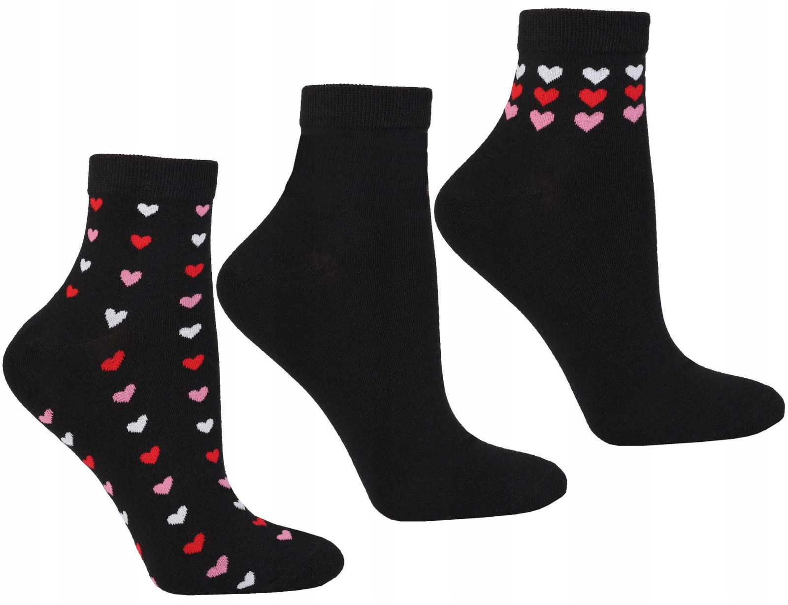 Skarpetki Damskie za Kostkę Wysokie 3/4 Serduszka Czarne 3-pary MORAJ