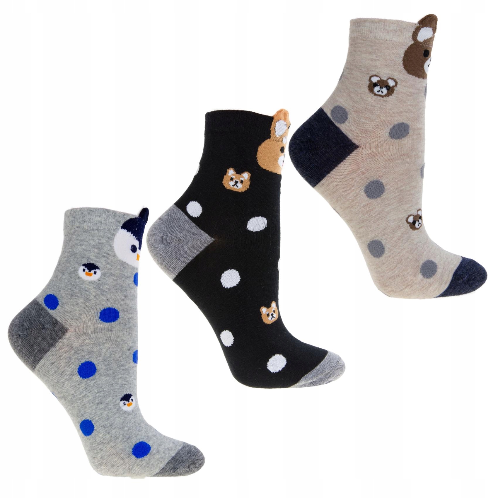 Skarpetki Damskie za Kostkę Wysokie 3/4 Urocze Zwierzaki 3-pary MORAJ