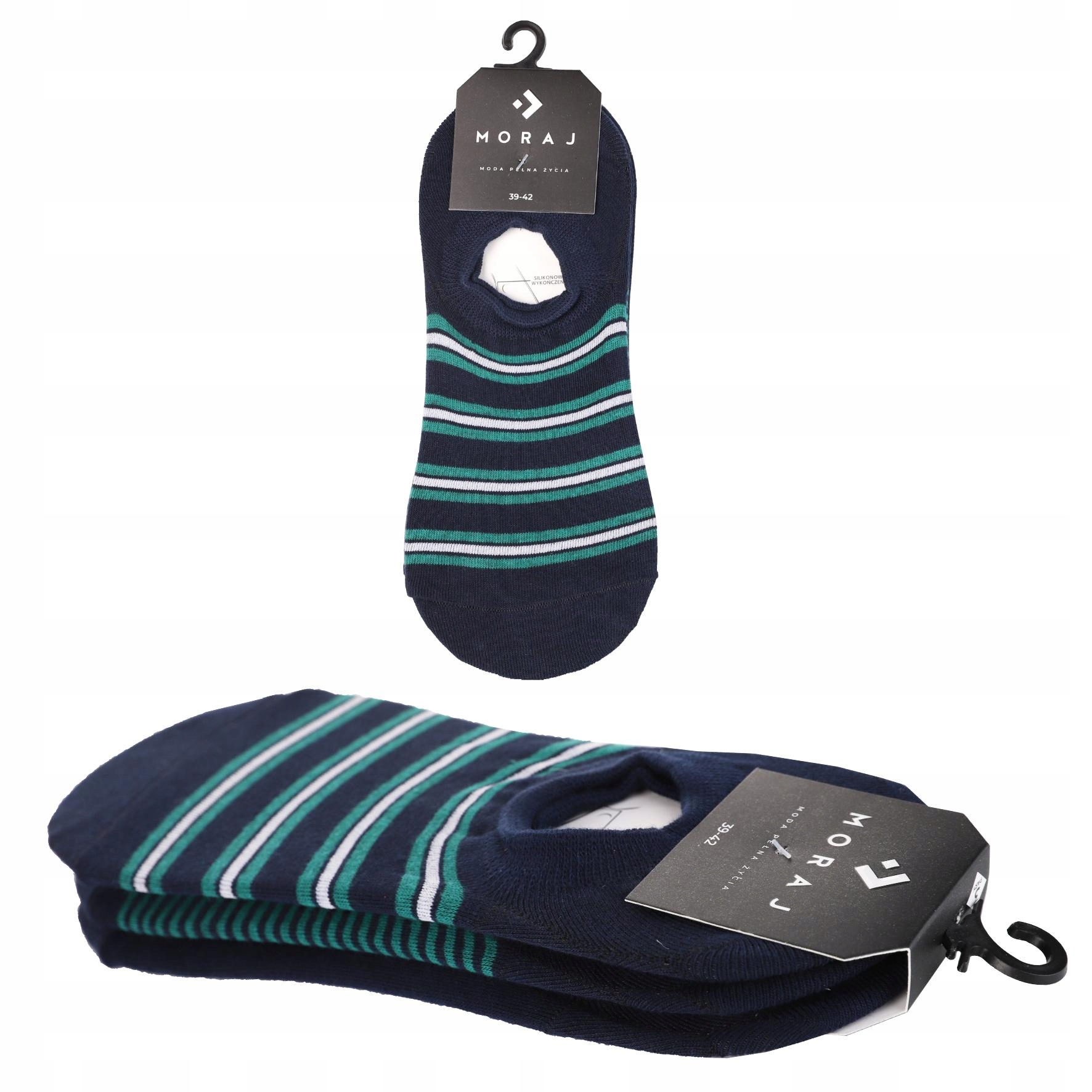 Skarpetki Męskie Niskie Stopki Silikon do kostki w Paski MORAJ 3-pak