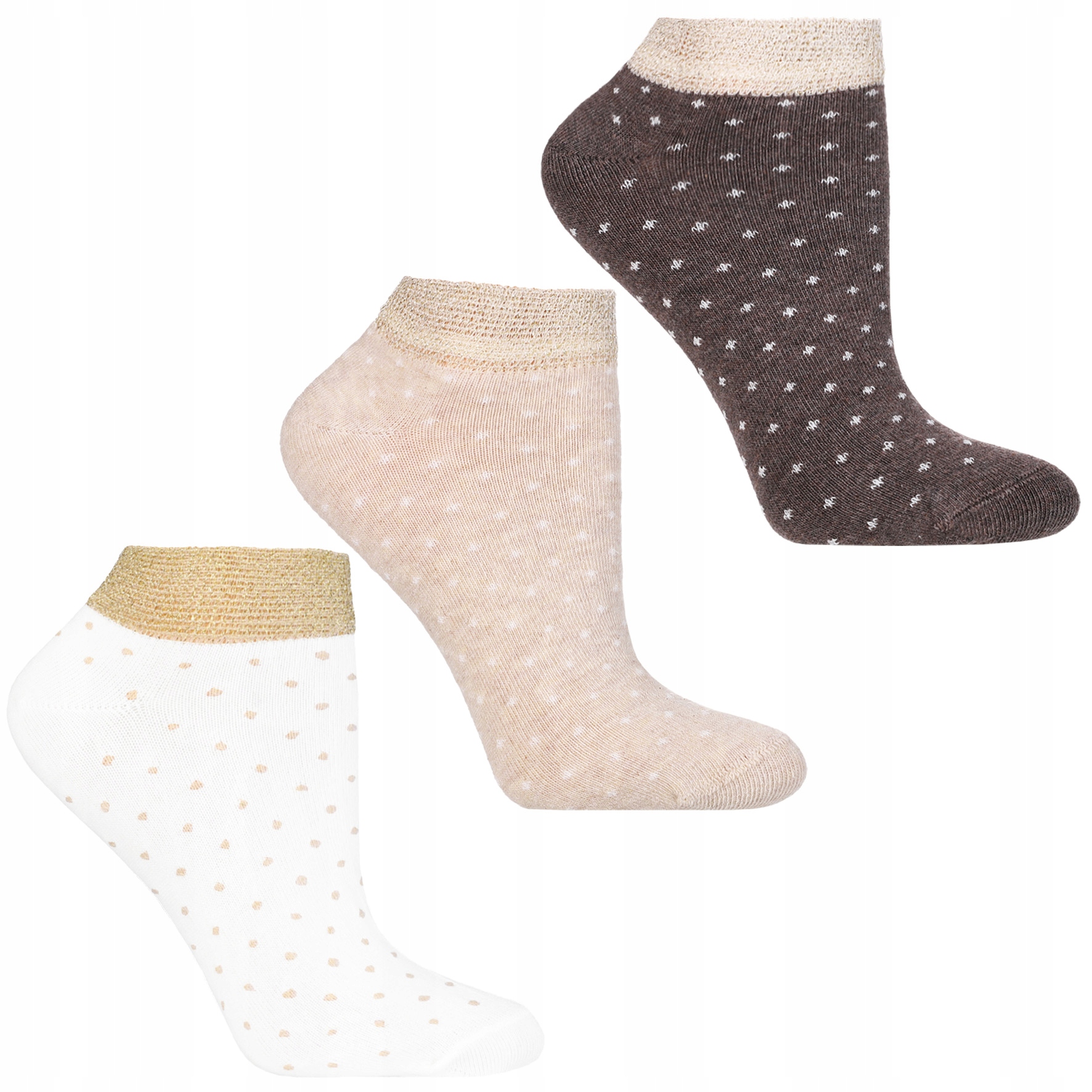 Uroczy zestaw skarpetek stopek damskich bawełnianych. Ten 3-pak to doskonałe rozwiązanie dla kobiet, które cenią sobie wygodę, jakość i styl. Skarpetki wykonane są z wysokiej jakości bawełny z domieszkami, co gwarantuje miękkość, oddychalność i trwałość.