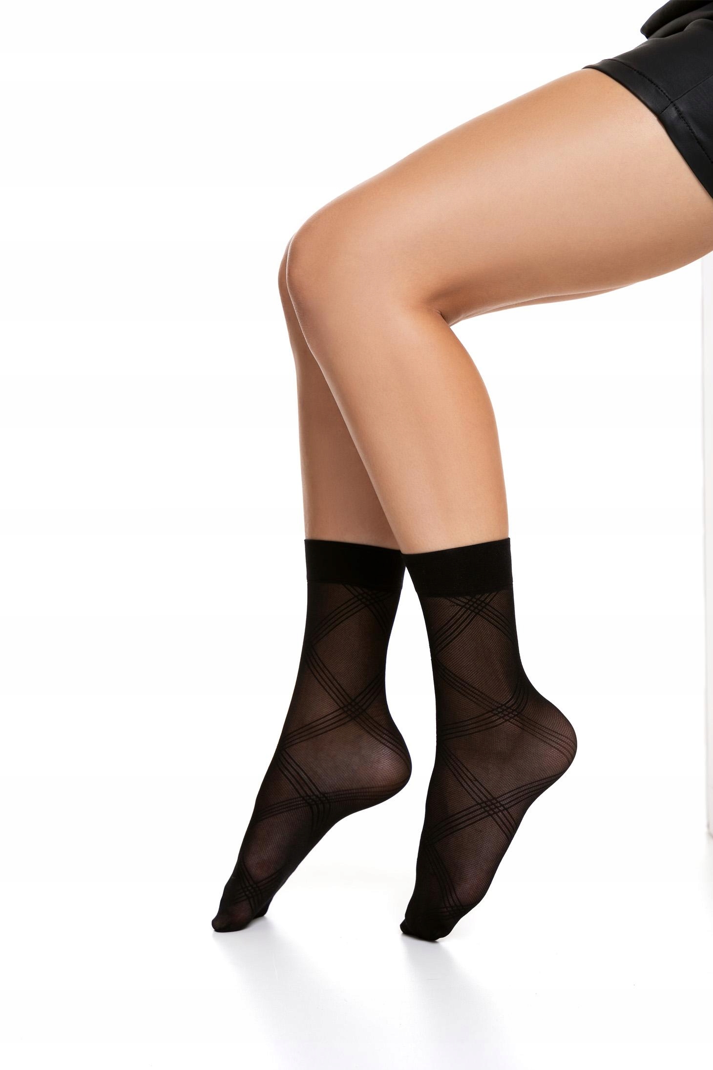 Skarpetki rajstopowe damskie 20 DEN z geometrycznym wzorem w kolorze czarnym to stylowy i subtelny dodatek do wielu stylizacji.
