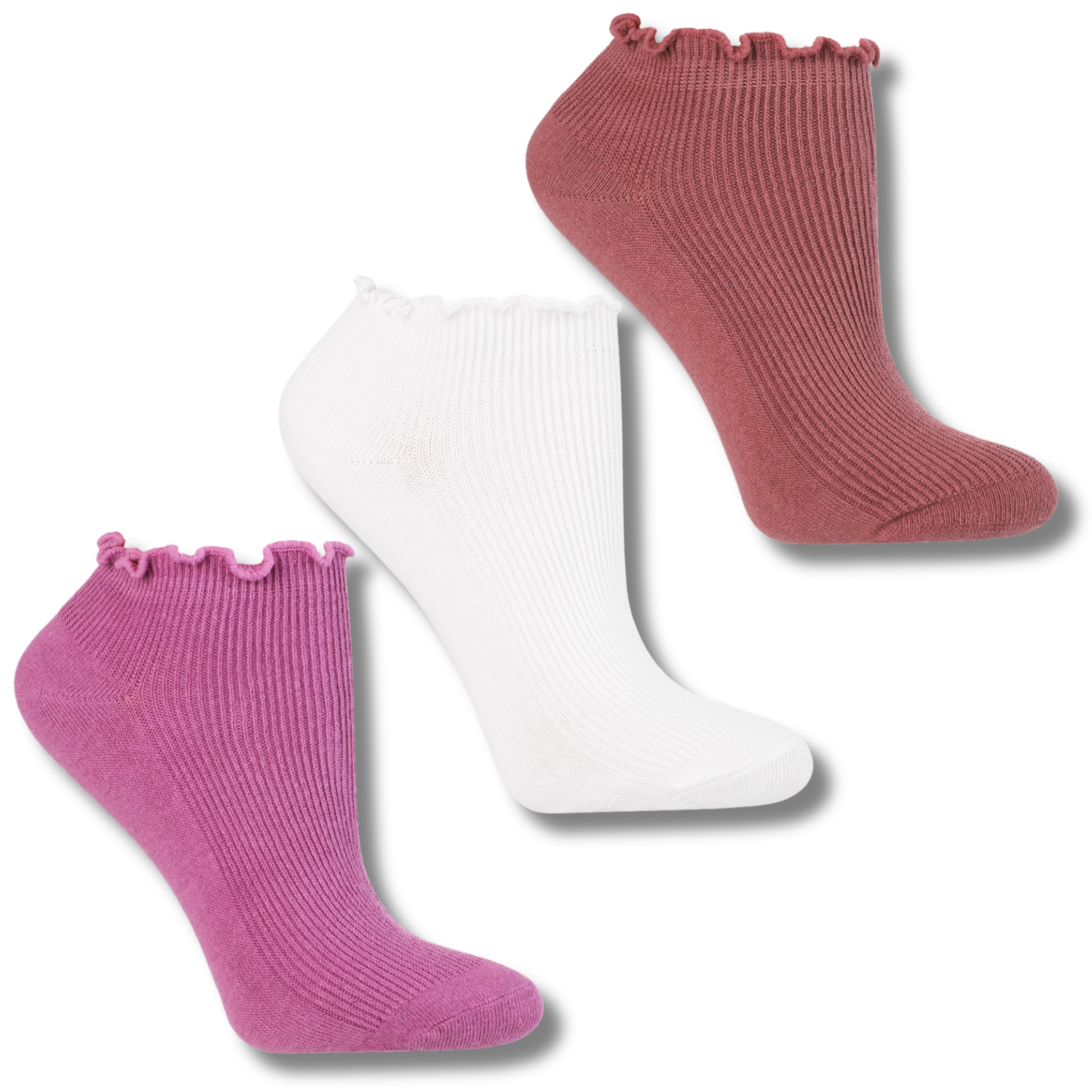 Odkryj idealne połączenie uroku i wygody z naszym 3-pakiem damskich skarpetek stopek z falbanką! Te wyjątkowe, prążkowane stopki zostały stworzone z myślą o kobietach, które cenią sobie modny wygląd, komfort i delikatne akcenty w codziennej stylizacji.