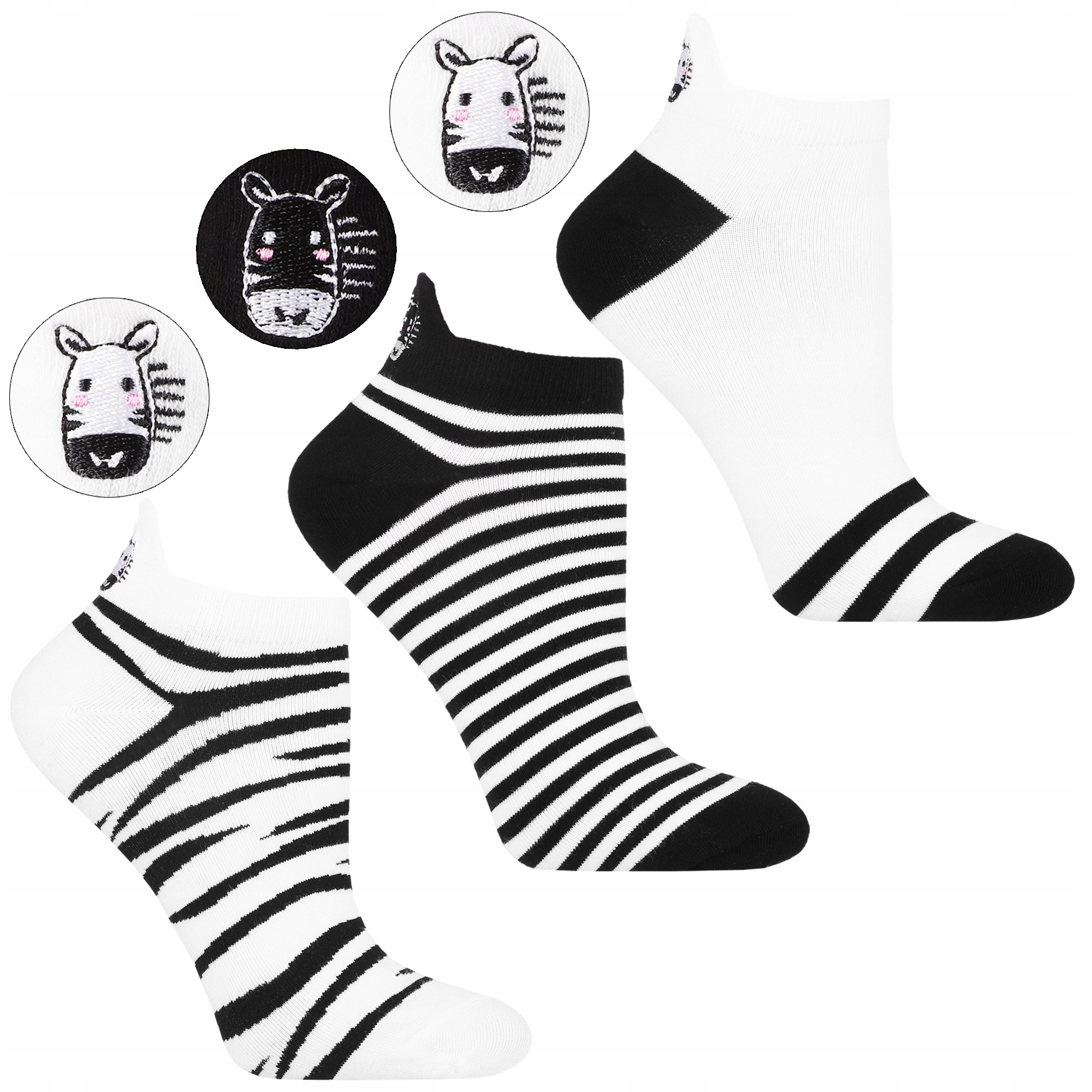 Skarpetki Stopki Damskie Niskie Skarpety ZEBRA Urocze MORAJ 3-PAK