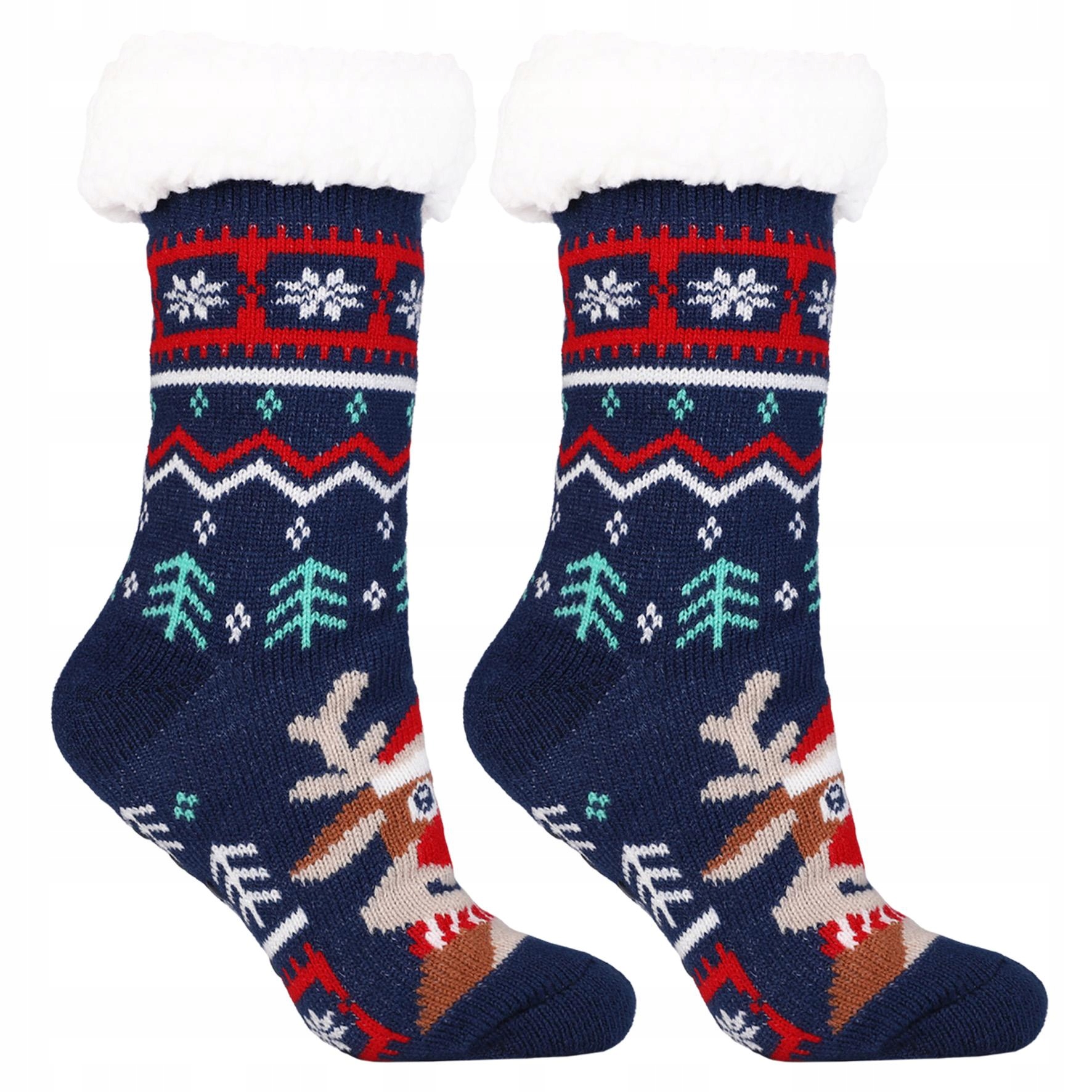 SKARPETKI ŚWIĄTECZNE CIEPŁE SKARPETY ABS RENIFERY r. UNI PREZENT MORAJ