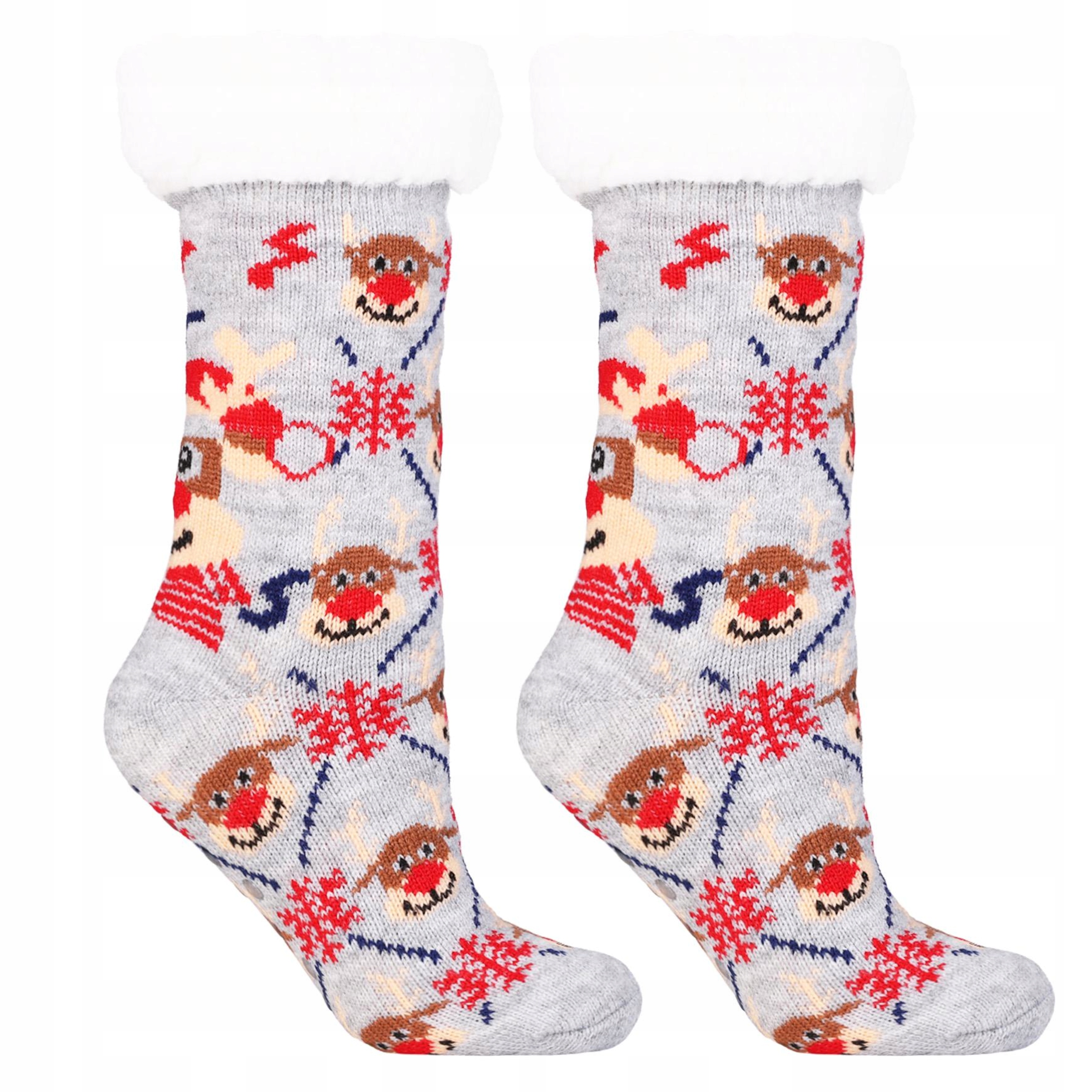 SKARPETKI ŚWIĄTECZNE CIEPŁE SKARPETY ABS RENIFERY r. UNI PREZENT MORAJ