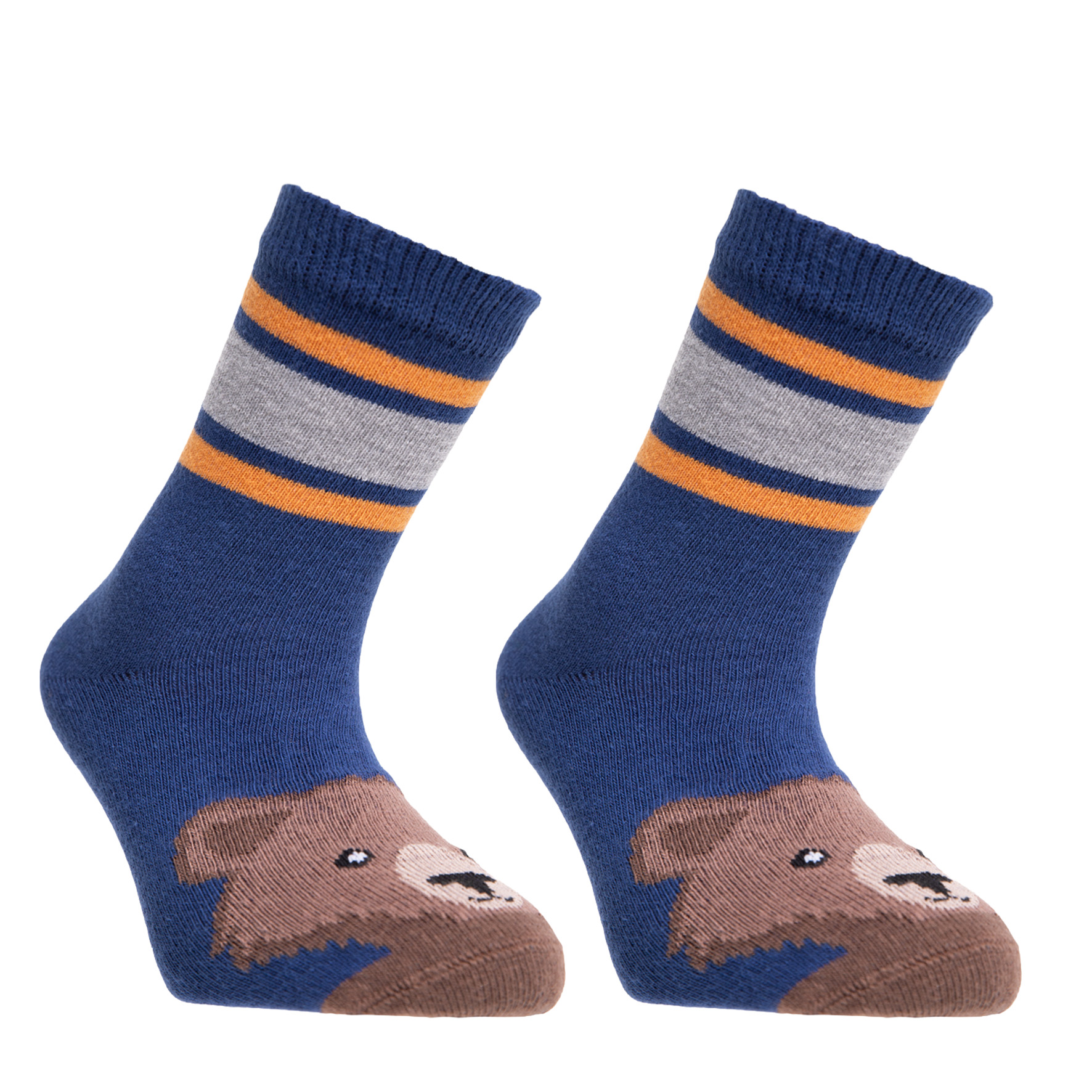 • Design: Urocze skarpetki ozdobione wesołym połączeniem motywów misia i kolorowych pasków, które z pewnością spodobają się każdemu chłopcu.