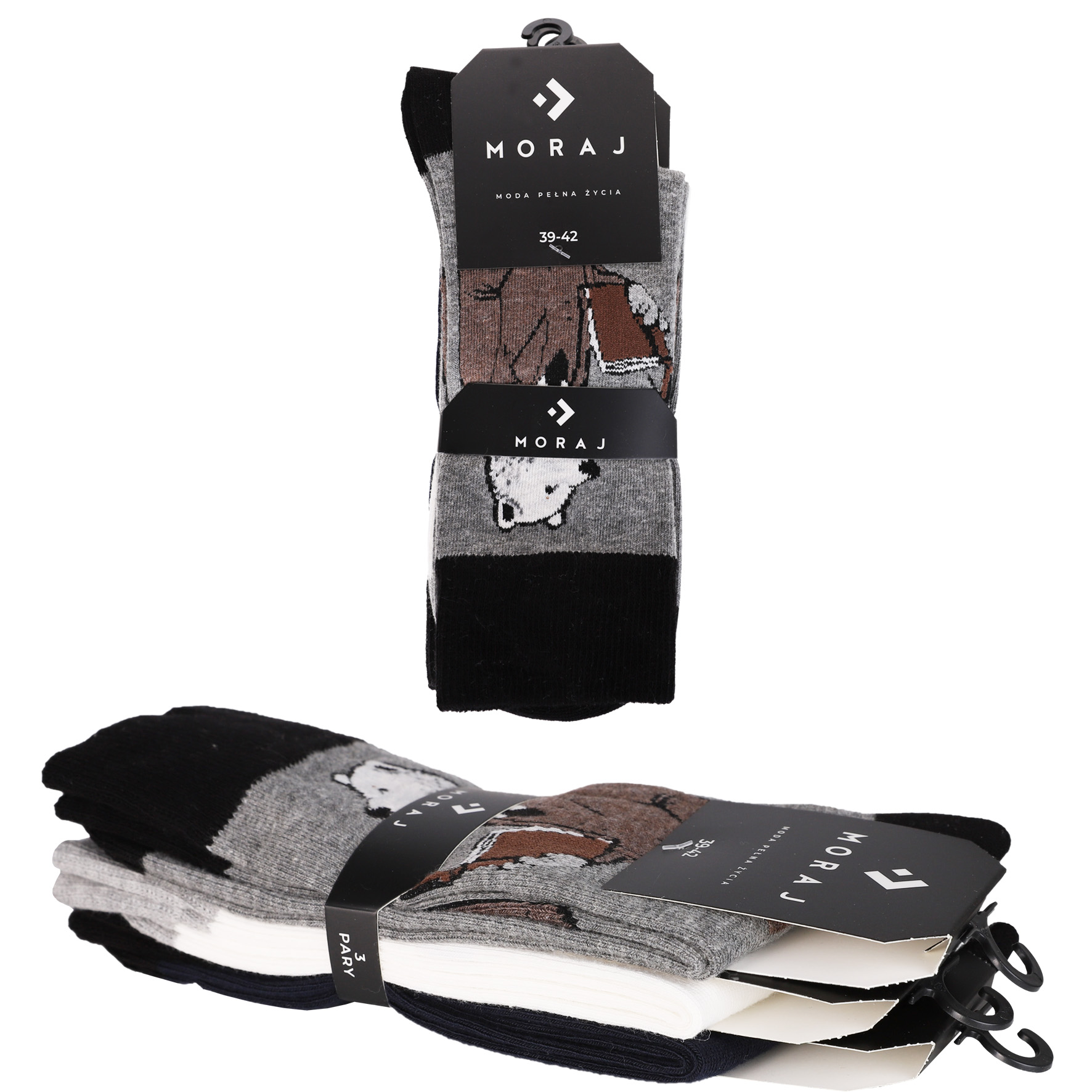 SKARPETY MĘSKIE MORAJ SKARPETKI DŁUGIE Z MISIEM ŚMIESZNE 3-PARY